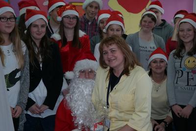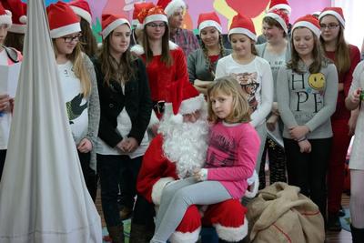 i Gimnazjum nr 2 ( klasa VIb SP i IIa PG) zaśpiewali dla nich świąteczne piosenki. Koncert odbył się w nietypowych warunkach, bo na świetlicy Oddziału Dziecięcego. Młodym artystom towarzyszyli opiekunowie: