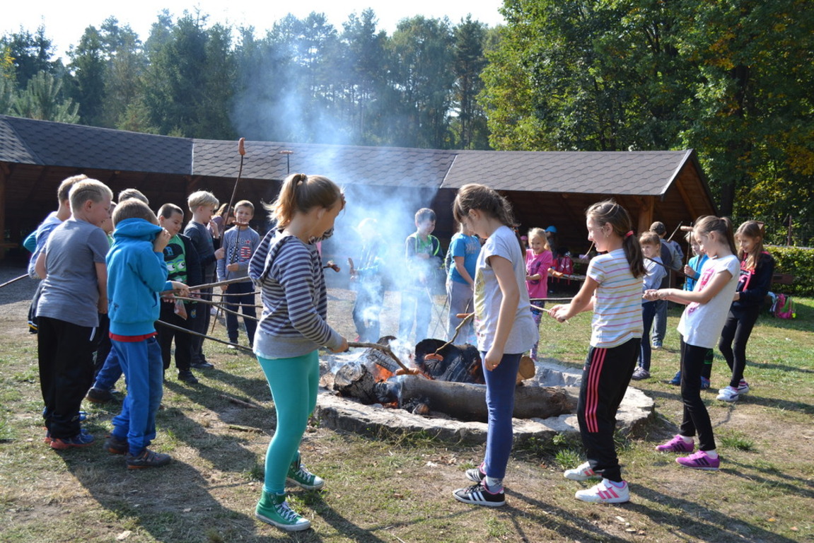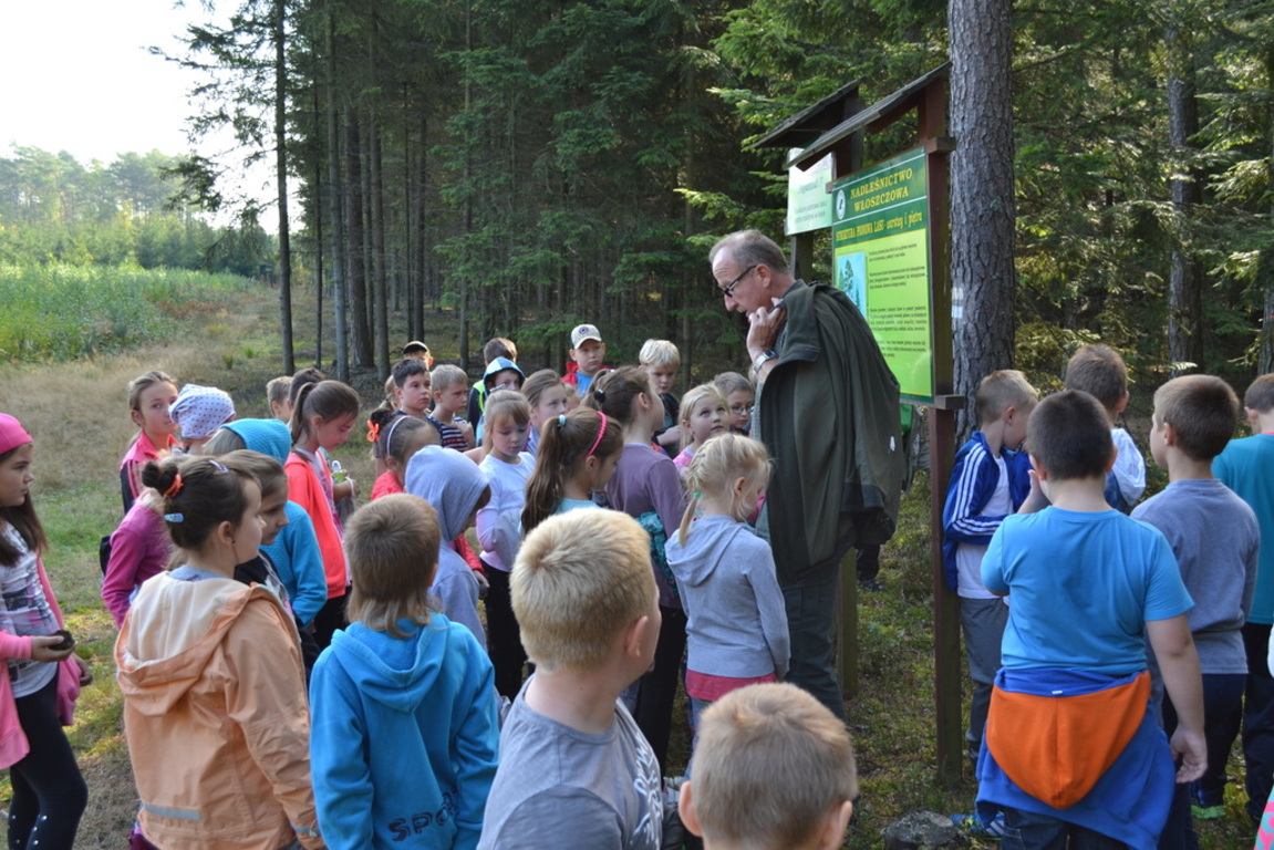 W poniedziałek, 5 października, pojechaliśmy na wycieczkę do Konieczna. Najpierw pan leśniczy poprowadził nas leśną ścieżką edukacyjną. Zobaczyliśmy szkółkę leśną, poznaliśmy warstwy lasu, budowę drzewa, nazwy roślin i zwierząt występujące w naszych lasach. Później upiekliśmy kiełbaski na ognisku i wesoło się bawiliśmy. Wyprawa nam się udała, bo była piękna pogoda.