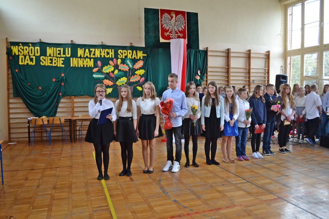 Dnia 13 października 2015r. w naszej szkole odbyło się ślubowanie uczniów klas pierwszych gimnazjum. Wydarzenie to zbiegło sie z obchodami Dnia Edukacji Narodowej, dlatego też uczniowie klas pierwszych przygotowali program artystyczny, aby podziękować swoim pedagogom za ich ciężką pracę.