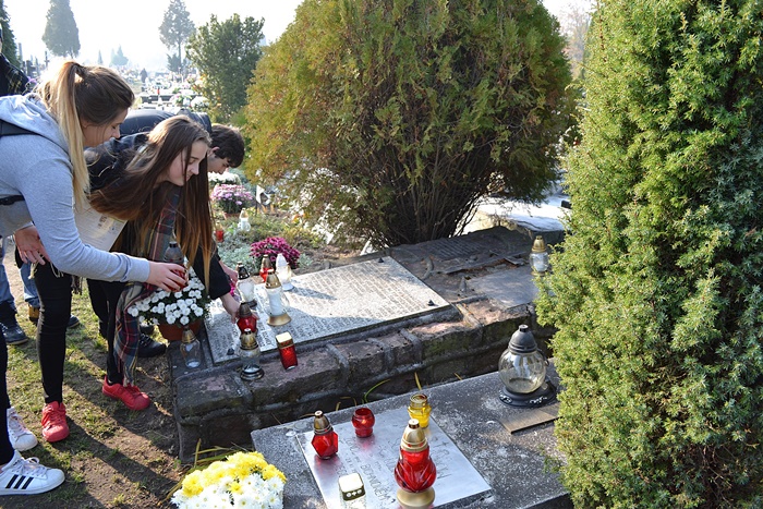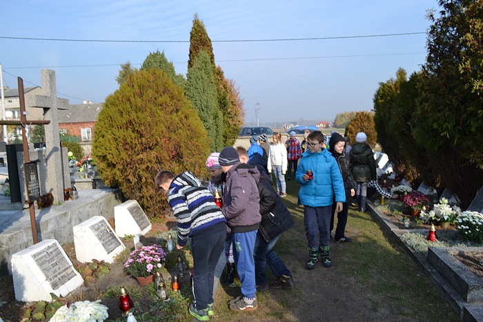 Koniec października to nostalgiczna pora, czas, który skłania nas do zadumy nad życiem i śmiercią. Zbliżający się dzień 1 listopada- uroczystość Święta Zmarłych – był powodem, dla którego uczniowie Zespołu Placówek Oświatowych nr 2 we Włoszczowie jak co roku uczcili pamięć tych, którzy odeszli, walcząc w obronie wolności i niepodległości naszej Ojczyzny. W związku z tym w ostatnich dniach na cmentarzu często można było zobaczyć uczniów, którzy porządkowali groby nieznanych żołnierzy. Z powagą i skupieniem składali kwiaty oraz zapalali znicze, oddając w ten sposób hołd poległym i pomordowanym za nasz kraj żołnierzom, pamietając również o nadchodzacym Święcie Odzyskania przez Polskę Niepodległości.