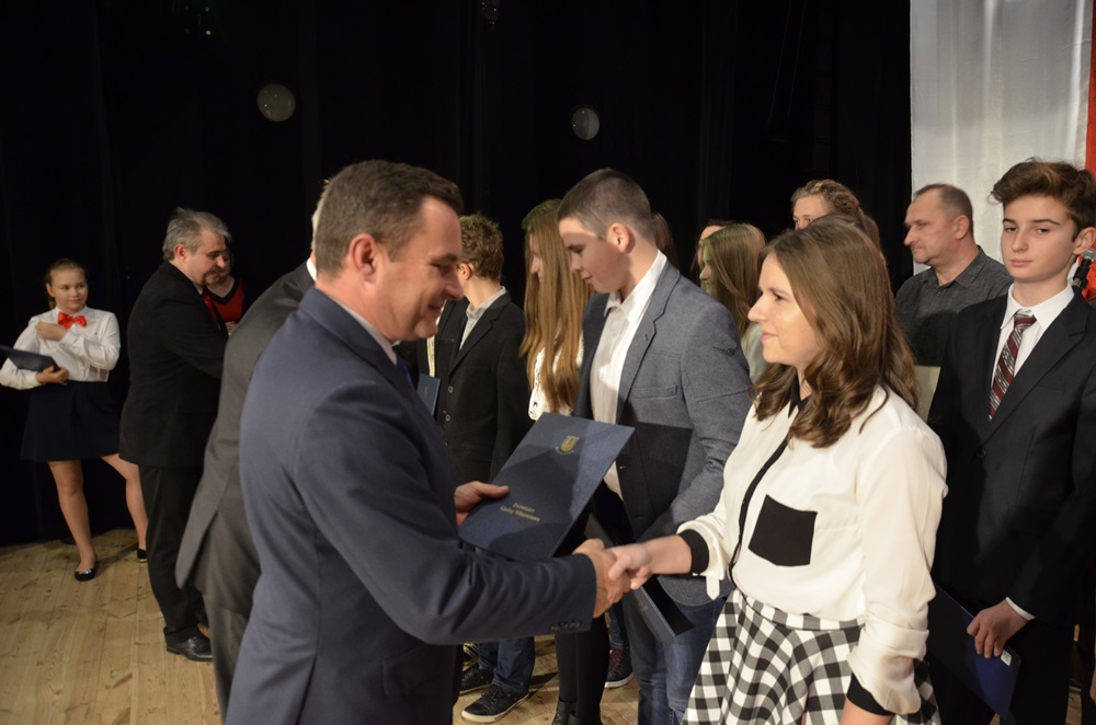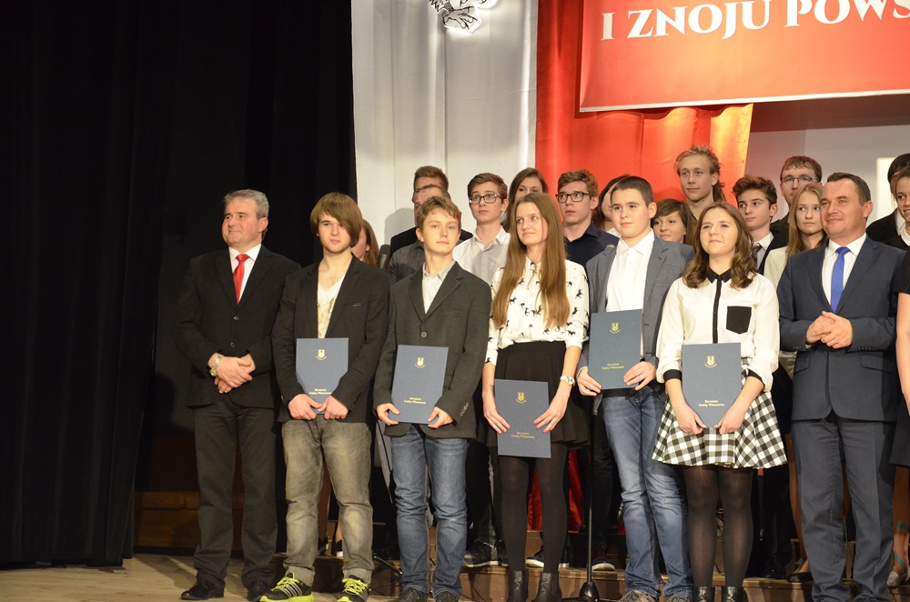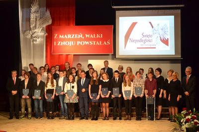 Dnia 10 listopada 2015 roku we włoszczowskim Domu Kultury odbyła się uroczysta akademia z okazji Dnia Niepodległości połączona z wręczaniem stypendiów dla uzdolnionych gimnazjalistów oraz studentów z naszej gminy. Fundatorem tej formy pomocy materialnej jest Burmistrz Włoszczowy – Grzegorz Dziubek. Zgromadzonych gości powitał Dyrektor ZPO nr 2 mgr Zbigniew Hamera, który zaprosił jednocześnie na część artystyczną przygotowaną przez uczniów wspomnianej placówki. Po wręczeniu stypendiów rozpoczęła się akademia, na którą złożyły się patriotyczne wiersze, pieśni legionowe, wypowiedzi archiwalne marszałka J. Piłsudskiego. Artystom towarzyszył chór szkolny, a dodatkowe emocje potęgowała baletowa metafora prezentująca rozbiór Polski, scenka rodzajowa oraz prezentacja multimedialna. Na szczególną uwagę i zainteresowanie zasługiwały stroje znakomicie oddające klimat dziejowych wydarzeń tamtych czasów. Przedstawienie dostarczyło zapewne wielu pozytywnych wzruszeń, a artyści otrzymali gromkie brawa. To kolejne wydarzenie " ku pokrzepieniu serc" pozwalające na poczucie dumy i jedności narodowej.