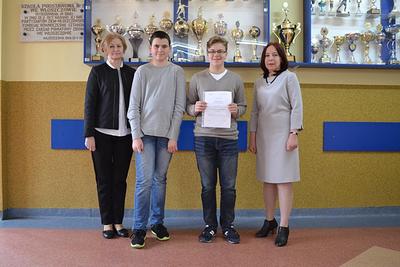 W tym roku szkolnym możemy pochwalić sie udziałem w finałach Konkursu przedmiotowego z historii - Adam Piatek klasa 2b, opiekunem jest P. Renata Klimczyk, oraz z geografii - Mikołaj Kowalczyk klasa 3b i Adam Piatek klasa 2b, opiekunem jest P. Barbara Kamola. Mamy nadzieję, że przyszły rok będzie dla nas bardziej łaskawy i będą laureaci, bo w tym roku niewiele zabrakło.
