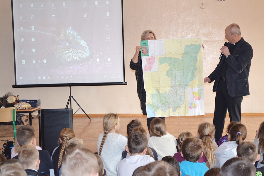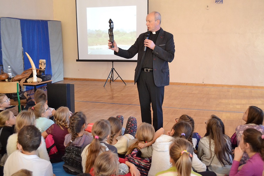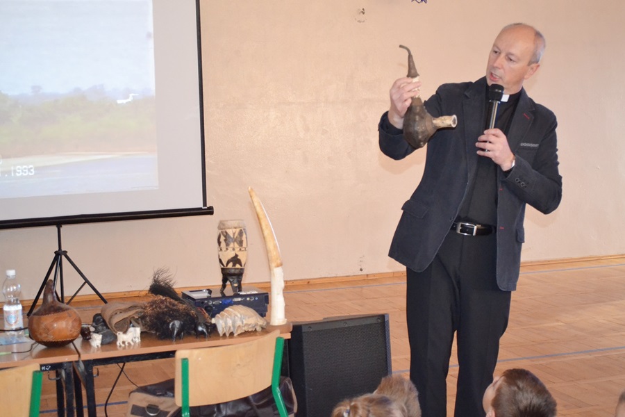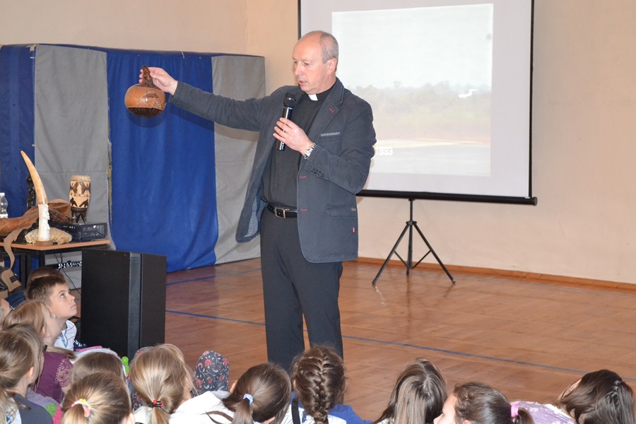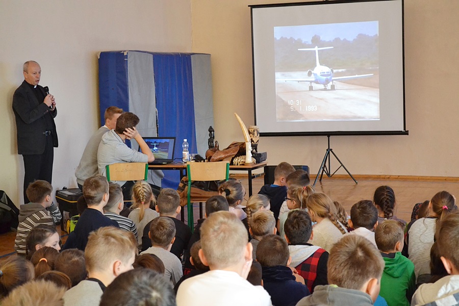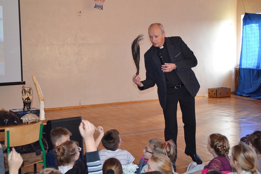 Szczególnym zainteresowaniem cieszyły się opowieści o zwyczajnym życiu żyjących tam dzieci oraz o zwierzętach i roślinach buszu. Dzieci z ogromną ciekawością oglądały przywiezione przez misjonarza oryginalne przedmioty takie jak: ogon i ząb słonia, skóra węża, stroje, rzeźby z kości słoniowej, naczynia i instrumenty. Ksiądz Misjonarz zaprezentował ponadto język ludzi żyjących w Kongo. Uczniowie mieli również niepowtarzalną okazję obejrzeć interesujący film przedstawiający życie naszego Księdza Misjonarza w tym niezwykłym kraju.