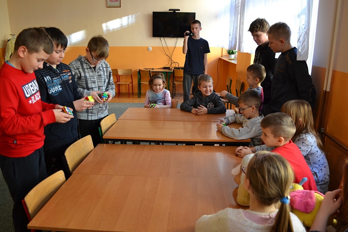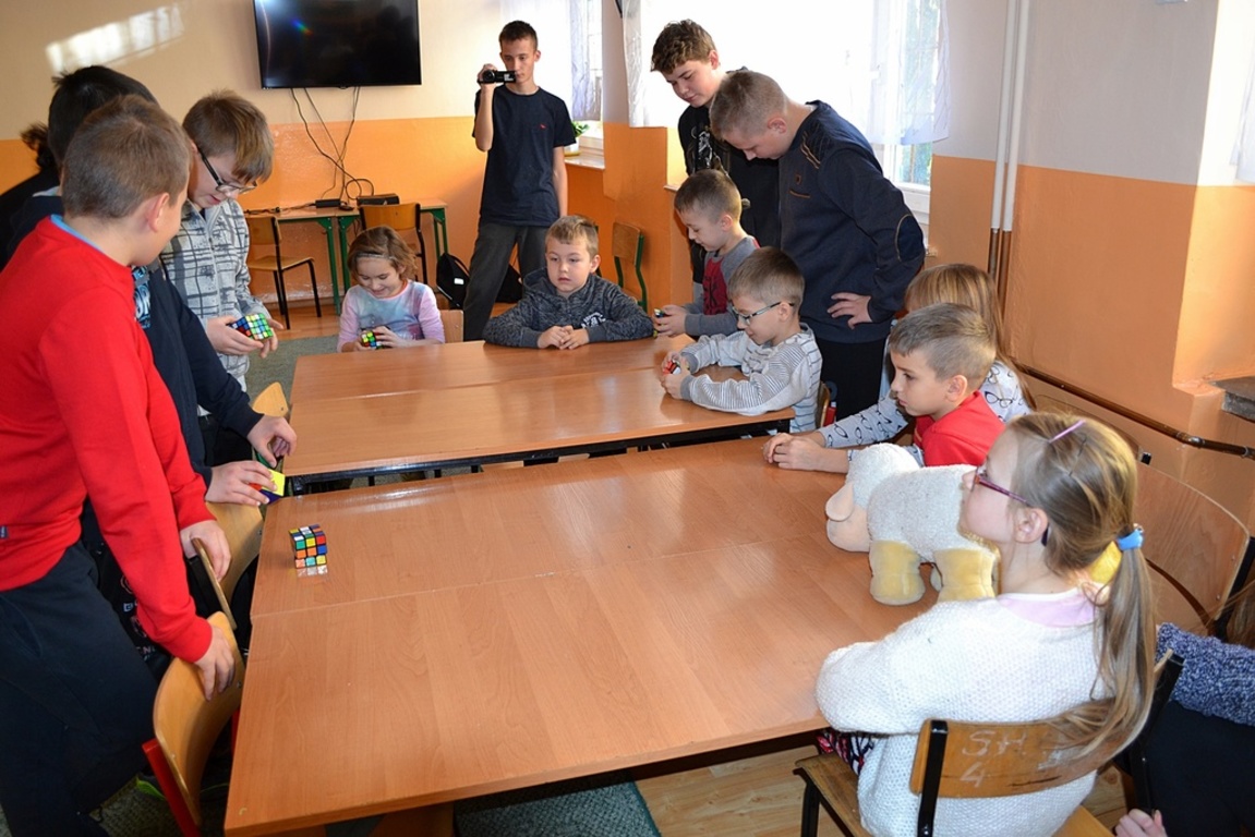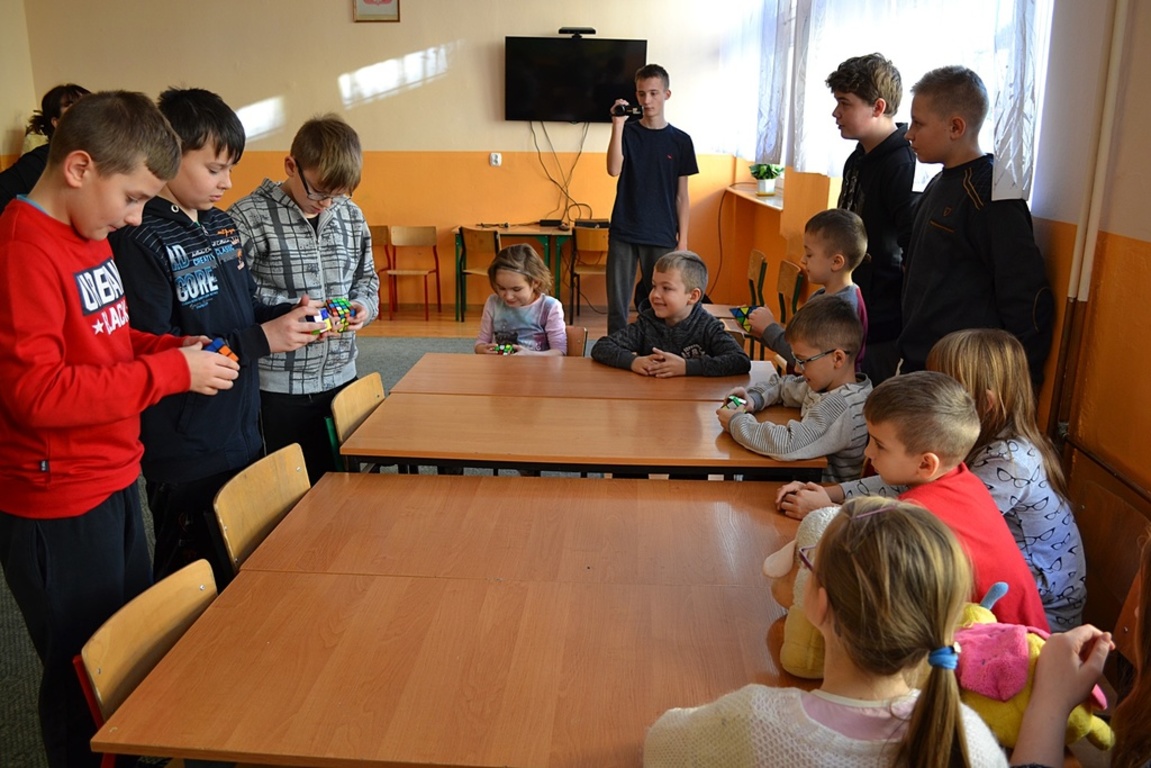 i umiejętności każdego ucznia z osobna. Gimnazjaliści także mieli okazję do nowych, ciekawych przemyśleń na temat własnego rozwoju. Wszystkie klasy gimnazjum, w dwóch turach, wzięły udziałw spotkaniu z Michałem Zawadką, autorem książek z zakresu rozwoju osobistego dla dzieci i młodzieży, który odwiedza szkoły w całej Polsce z autorskim programem pn. „Chcę być kimś”. Młodzież oceniła to spotkanie jako „rewelacyjnie przeprowadzone” i „bardzo przydatne”, bo trener pokazał, jak nie marnować swej szansy na rozwój i nie opierać swej samooceny na „ocenianiu” przez rówieśników. Poza wymienionymi formami edukacji metodą szkoleniową i warsztatową, w realizowanym zadaniu przewidziana jest również innowacyjna forma edukacji spersonalizowanej – tutoring rozwojowy. Kilkoro uczniów gimnazjum ma okazję brać udział w cyklu spotkań indywidualnych z tutorem, by pracować nad swoją ścieżką rozwoju. Tutoring prowadzi na zasadzie pracy wolontariackiej partner zadania, Fundacja Centrum Edukacji dla Rozwoju we Włoszczowie, która dysponuje wykwalifikowanym tutorem.