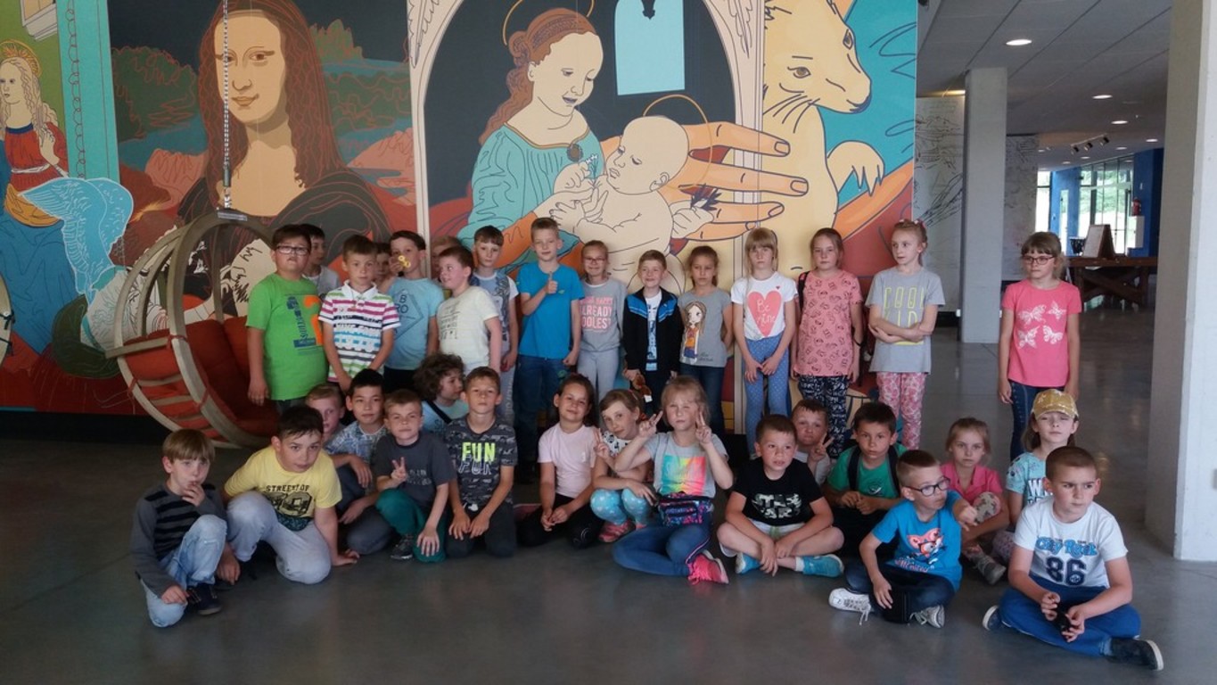 10 maja uczniowie klas I a i II a byli na wycieczce krajoznawczej. Najpierw zobaczyli Jaskinię „Raj”, która jest jedną z najbardziej znanych atrakcji turystycznych Gór Świętokrzyskich i jedną z najpiękniejszych jaskiń krasowych naszego kraju. Potem zwiedzili najważniejsze miejsca w Chęcinach. Na koniec bawili się i zdobywali wiedzę w Centrum Nauki Leonardo Da Vinci. Było tam wiele gier multimedialnych i ciekawych eksponatów technicznych. Dzieci mogły m. in. zobaczyć jak pracuje serce, jak wyglądają zdrowe płuca i płuca palacza, przyjrzeć się swoim żyłom. Niektóre pokonywały przeszkody na wózku inwalidzkim w zaaranżowanej rzeczywistości miejskiej.