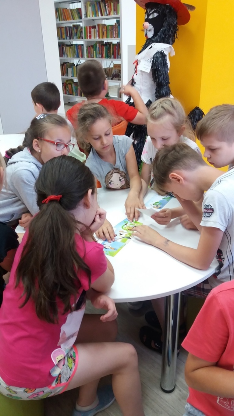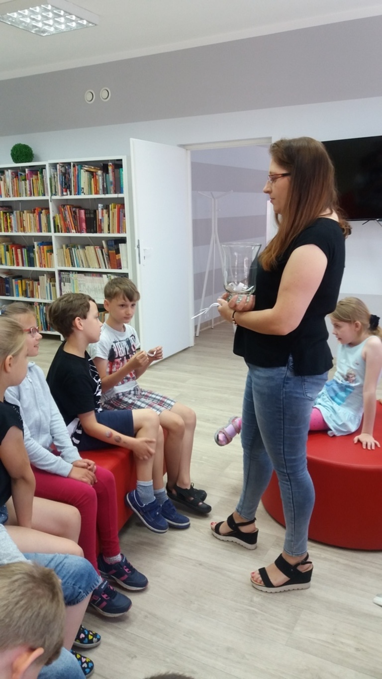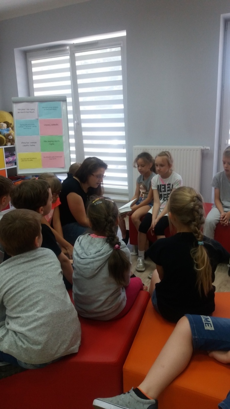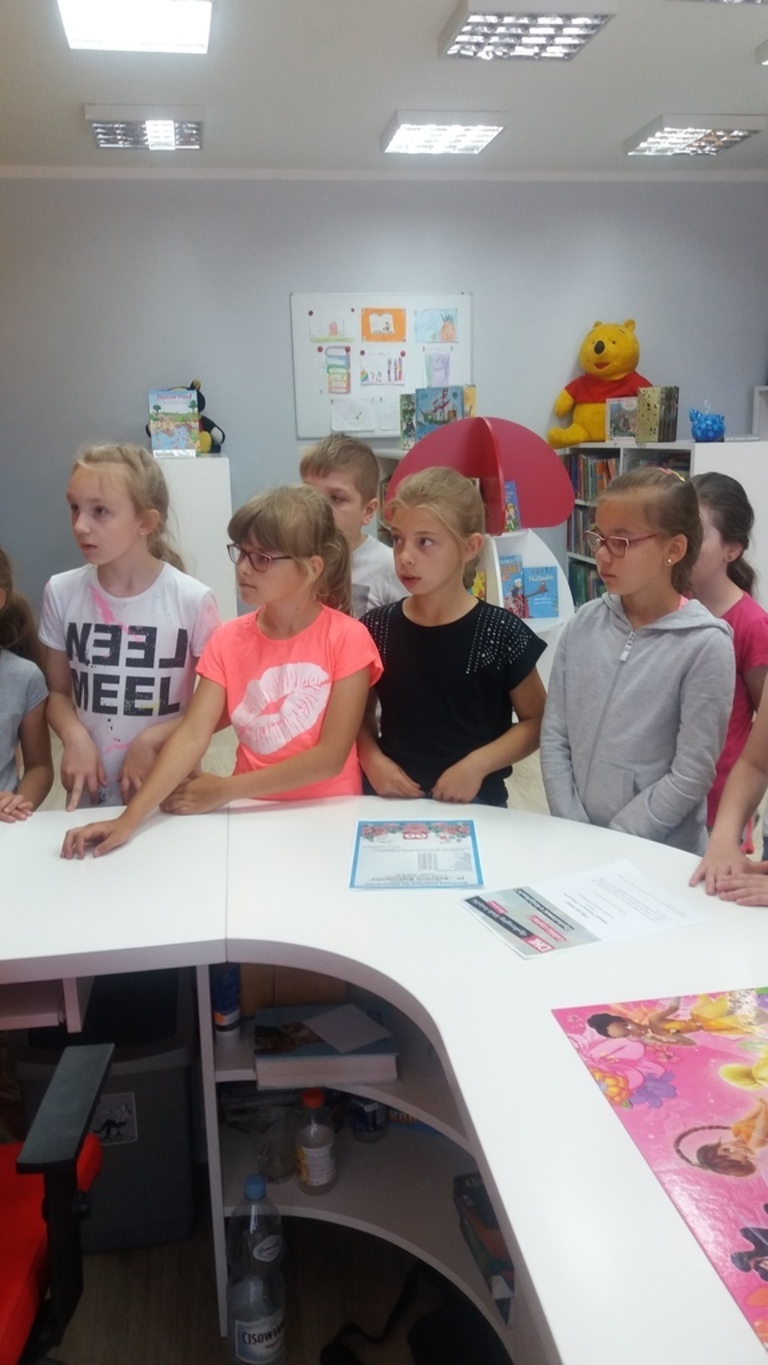 29 maja uczniowie klasy II a byli w Bibliotece Publicznej we Włoszczowie. Na początku zobaczyli nowe pomieszczenia i księgozbiór oraz poznali funkcjonowanie komputerowego systemu bibliotecznego. Dzieci mogły wyjąć z regałów i obejrzeć książki i czasopisma. Chłopców najbardziej zainteresowały książki o tematyce sportowej. Następnie uczestniczyli w zajęciach pt. „W świecie baśni Andersena”. Pani bibliotekarka przeczytała im baśń „Pięć ziarenek grochu” o pomaganiu i nadziei. Później rozwiązywały bajkowe zagadki i tworzyły historyjkę obrazkową. Na koniec skorzystały z Czytelni Internetowej. Żegnając się obiecały, ze niebawem wrócą tu z rodzicami, ponieważ bardzo im się podobało.