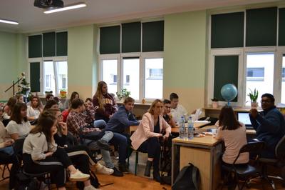 Spotkanie ze studentami bedzie zapewne motywowało naszych uczniów do jeszcze intensywniejszej nauki języka angielskiego . Mamy nadzieję, że takich spotkań w naszej szkole będzie więcej .