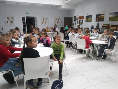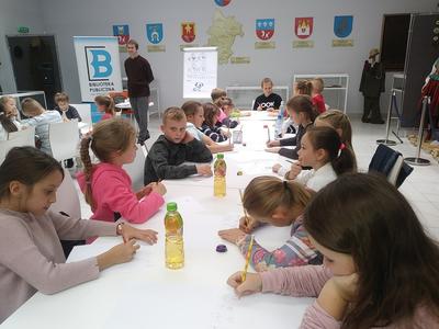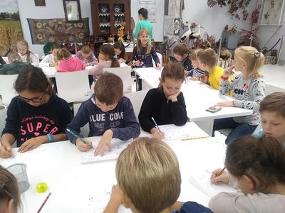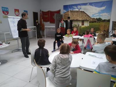 Uczniowie klasy 2a i klasy 3b w dniu 10 października 2019 roku, w Bibliotece Publicznej we Włoszczowie uczestniczyli w niezwykłym spotkaniu z grafikiem – ilustratorem panem Łukaszem Zabdyrem.