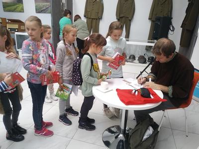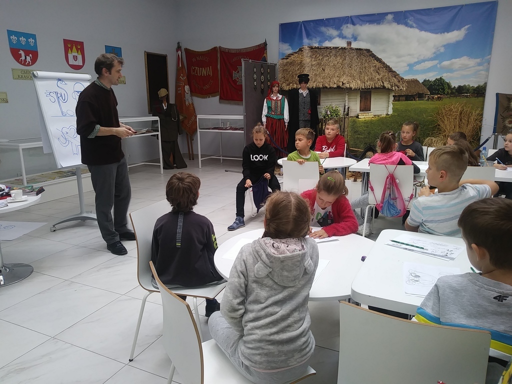 Podczas tego spotkania dzieci miały okazję poznać ciekawego człowieka i dowiedzieć się na czym polega jego praca. Bardzo interesujące zajęcia przeprowadzone w formie warsztatów pozwoliły przybliżyć uczniom dziedzinę sztuki, z którą stykają się przecież dość często czytając książki, komiksy czy czasopisma. Mogli także spróbować swoich sił w tej dziedzinie ucząc się techniki rysowania pod czujnym okiem pana Łukasza. Spotkanie przebiegło w niezwykle miłej atmosferze, a zakończyło się rozdaniem autografów opatrzonych rysunkami artysty i pamiątkowymi zdjęciami.