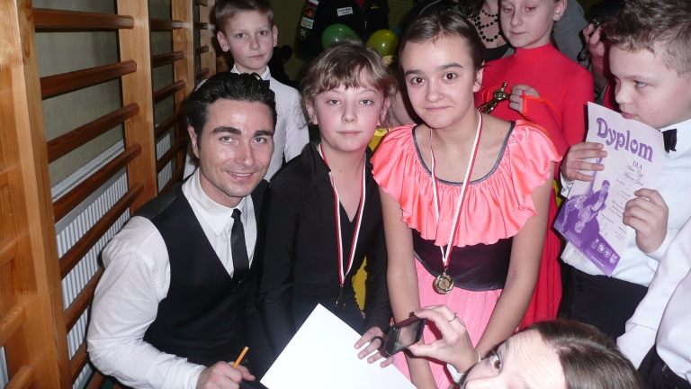 Uczniowie naszej szkoły - Zuzanna Bełtowska (kl.4c), Julia Tyjas, Piotr Kępiński i Wojciech Molenda (wszyscy z kl. 6a) w niedzielę 22 stycznia 2012r. uczestniczyli w konfrontacjach tanecznych w Opatowie. Gośćmi spotkania byli mistrzowie w tańcu towarzyskim znani z programu „Taniec z gwiazdami” – Anna Głogowska i Jan Kliment. Tańczyli bajecznie. Nie można było oderwać od nich oczu. Potem z uśmiechem na twarzy rozdawali autografy i pozwolili się fotografować. To było niezapomniane spotkanie.
