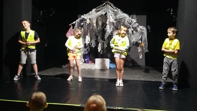 Następnie uczestniczyliśmy w ciekawych warsztatach teatralnych. Dzieci miały