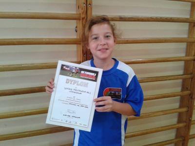 W grupie szkół podstawowych rocznik 2001-2002 wystąpiły 4 drużyny: z Bukowy, Komornik, Konieczna i Włoszczowy SP nr 2. które rozegrały mecze "każdy z każdym". Dziewczęta z "Dwójki" grały z ogromnym zaangażowaniem. Wygrały wszystkie mecze nie tracąc żadnej bramki, zdobyły tym samym pełną pulę punktów i zakwalifikowały się do etapu wojewódzkiego. Królem strzelców została Julia Andzel (na zdjeciu), która zdobyła 7 bramek wszystkie strzelone przy świetnej asyście siostry Gabrieli Andzel, zdobywczyni jednej z bramek.)
