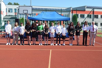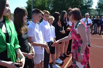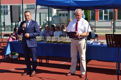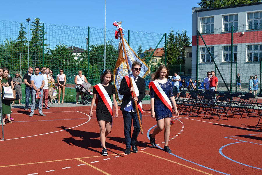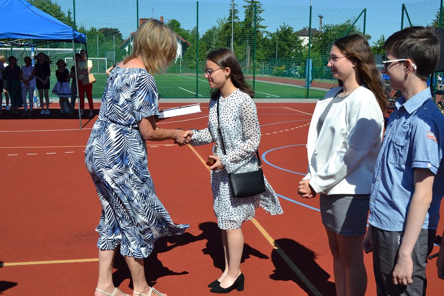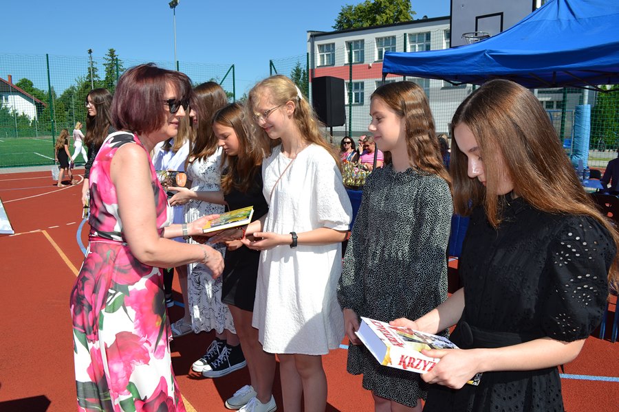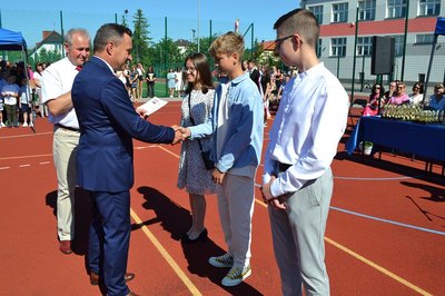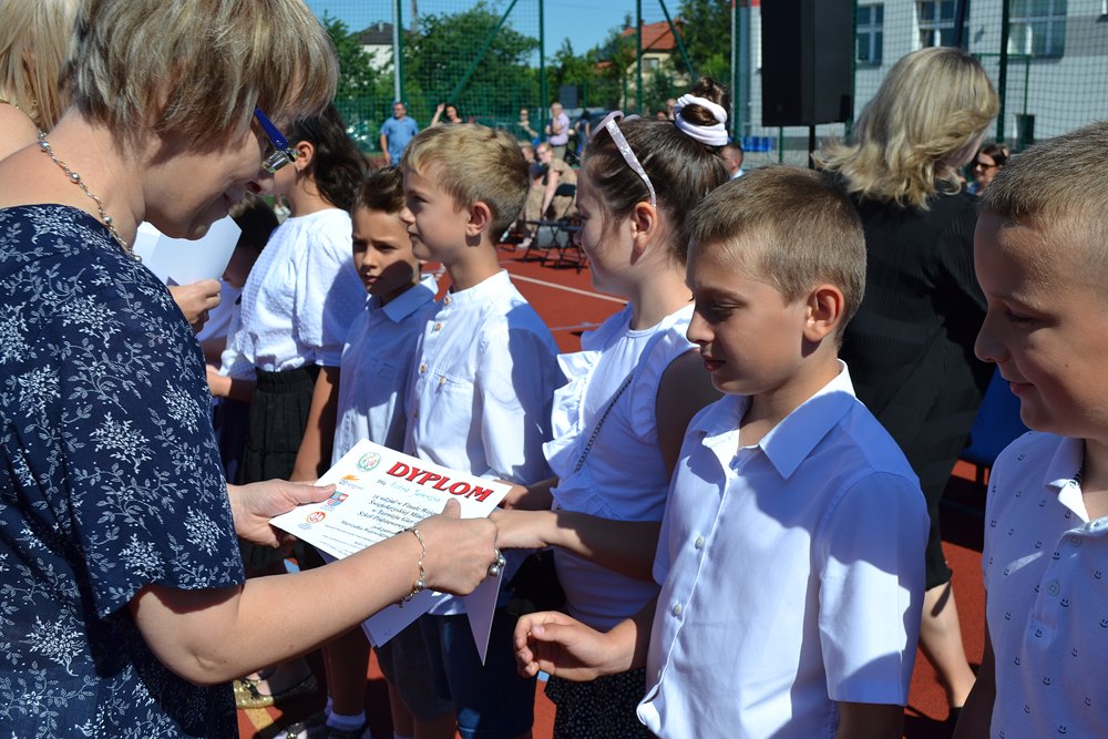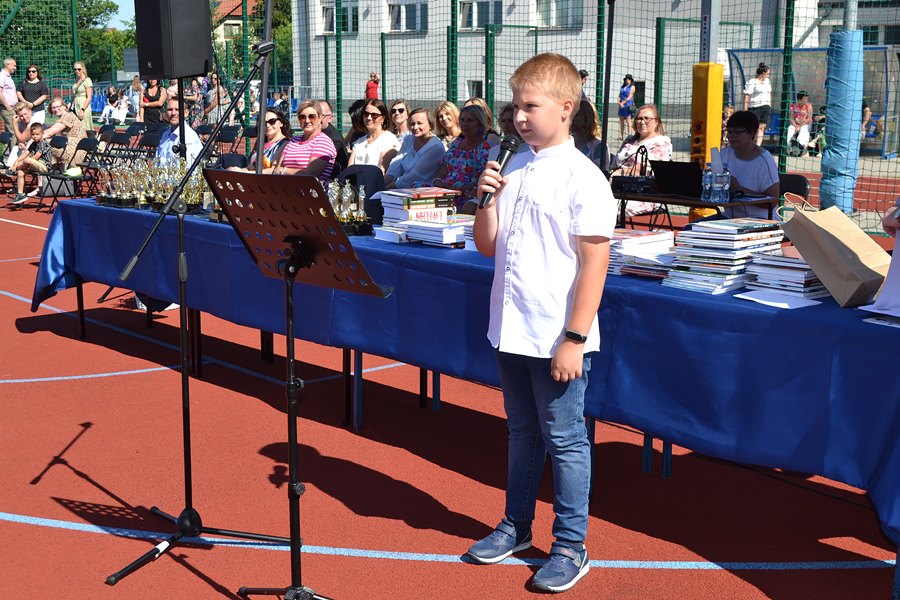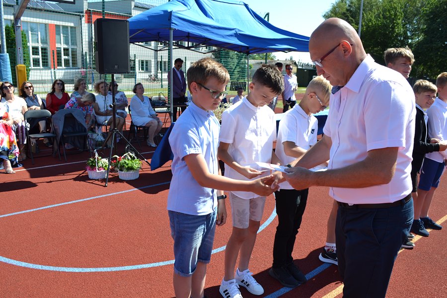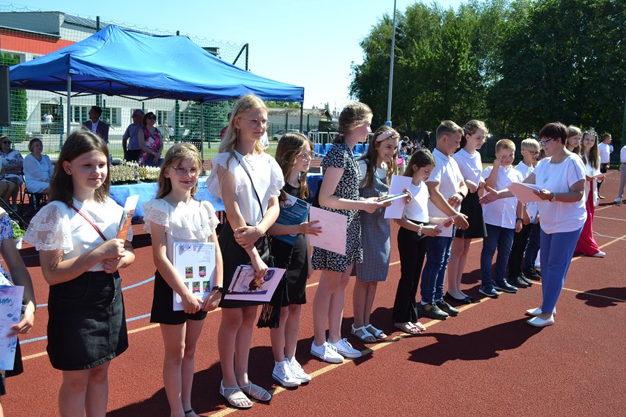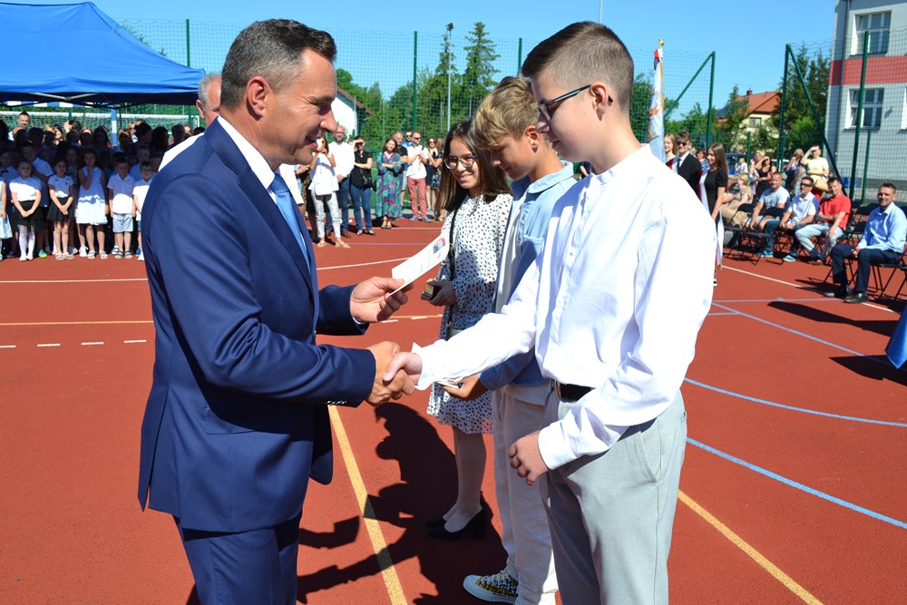 24.06.2022 r. na szkolnym boisku zgromadzili się uczniowie, dyrekcja i grono pedagogiczne szkoły oraz rodzice. Podczas uroczystości kończących bieżący rok szkolny wręczono nagrody uczniom wyróżniającym się w nauce, sporcie i działalności poza szkolnej. Uroczystość uświetnił swą obecnością burmistrz gminy Włoszczowa Grzegorz Dziubek. Wszystkim dopisywał doskonały humor pogoda również, tym bardziej, że uczniowie w perspektywie mają dwa miesiące wakacji.