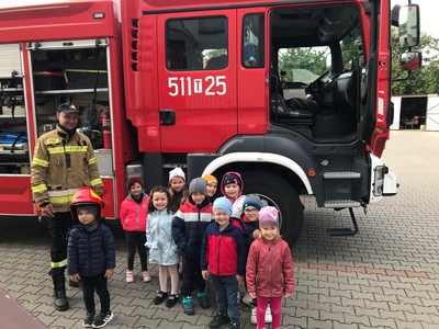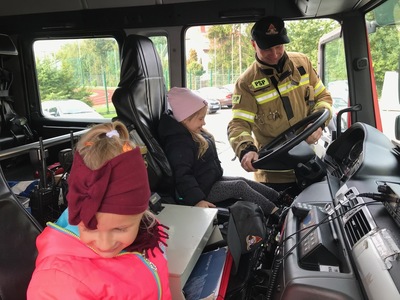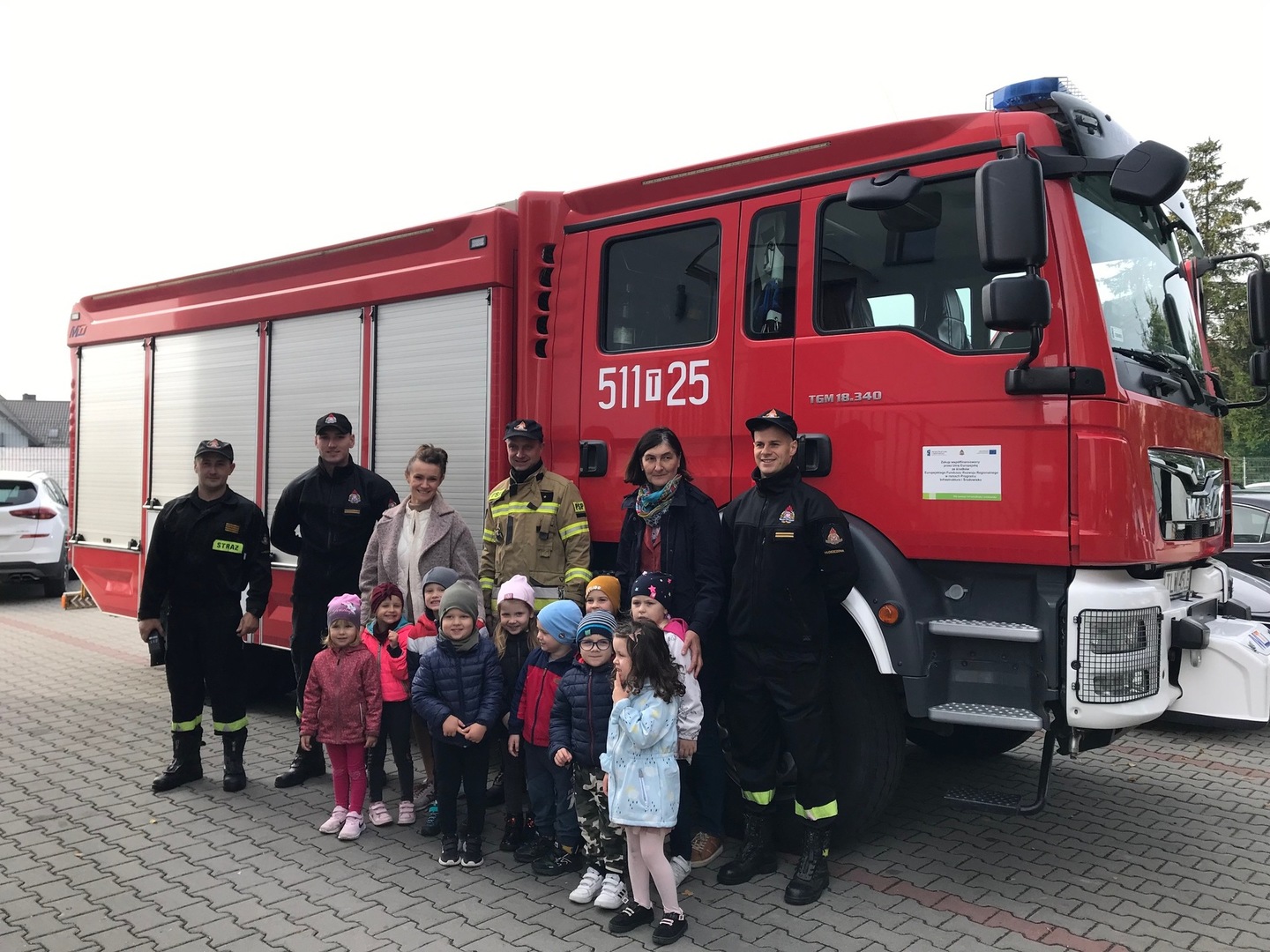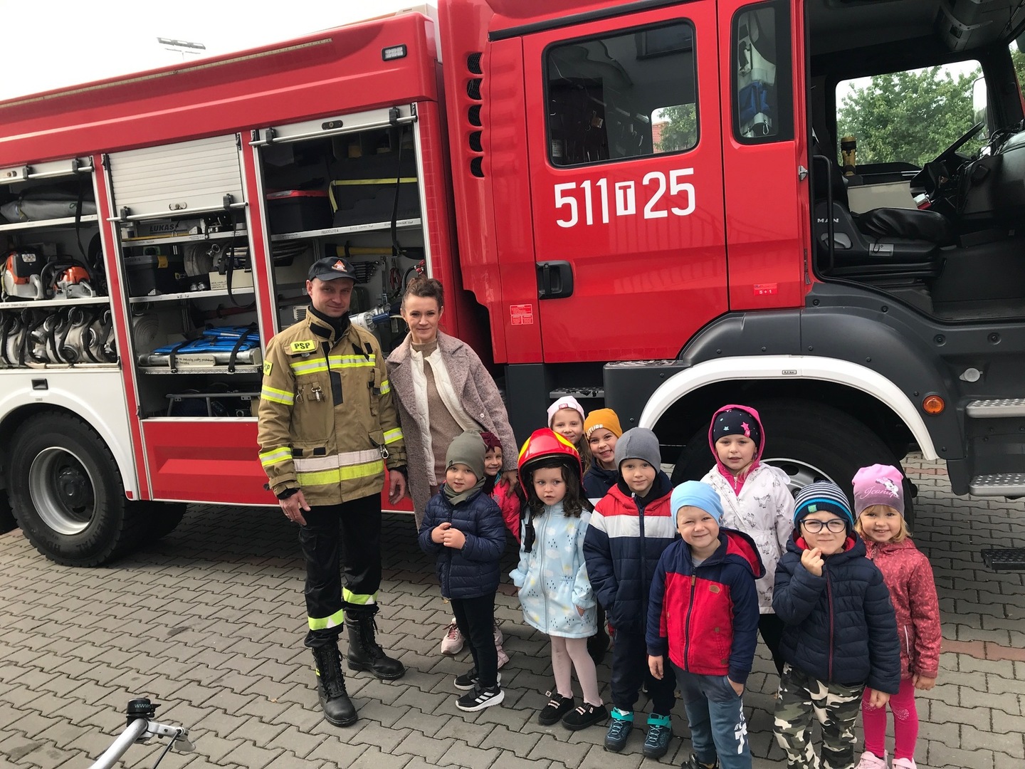 W dniu 27.09.2022 r., nasz oddział przedszkolny odwiedzili strażacy. Przybliżyli dzieciom, na czym polega ich praca oraz jakim sprzętem ratowniczym się posługują. Największą atrakcja był wóz strażacki do którego dzieci mogły wejść i przez chwile poczuć się jak strażacy podczas akcji przeciwpożarowej, mogły również przymierzyć specjalistyczny strój w którym strażacy gaszą pożary.