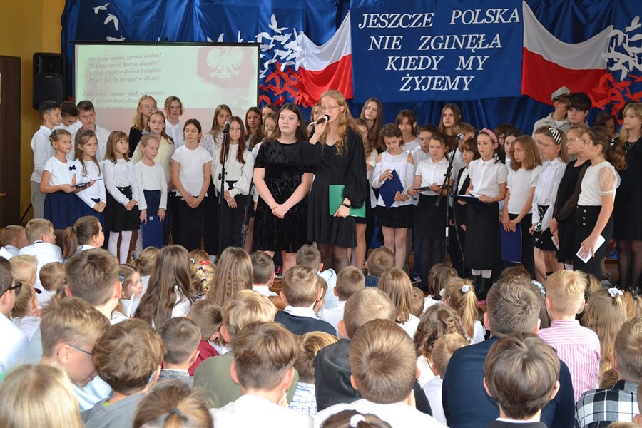 Społeczność uczniowska, dyrekcja, nauczyciele i pracownicy SP nr 2 w czwartek 10 listopada 2022r. uczcili rocznicę Święta Niepodległości uroczystą akademią. Prezentowane przez młodych artystów teksty, scenki rodzajowe i pieśni o charakterze patriotycznym przypominały wszystkim o dniu wielkiej radości sprzed lat dla całego narodu polskiego-chwili, w której odzyskaliśmy niepodległość.