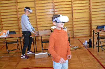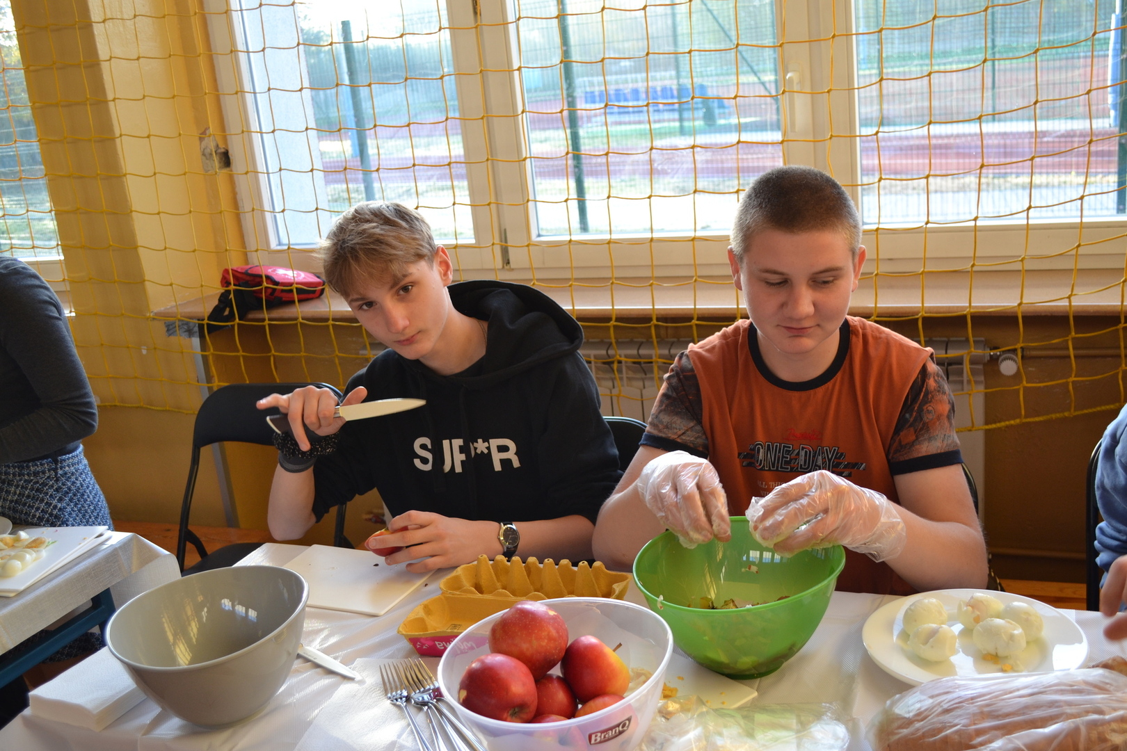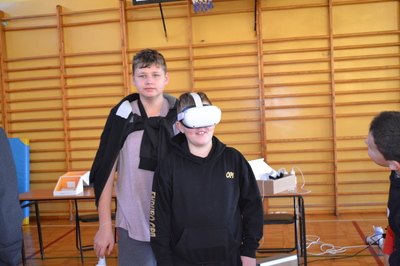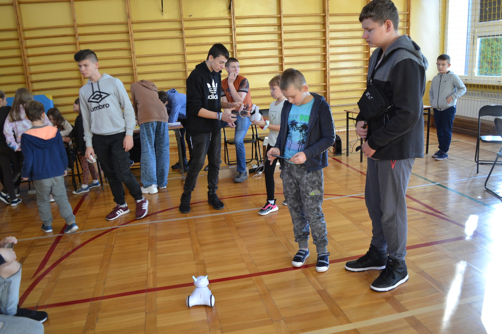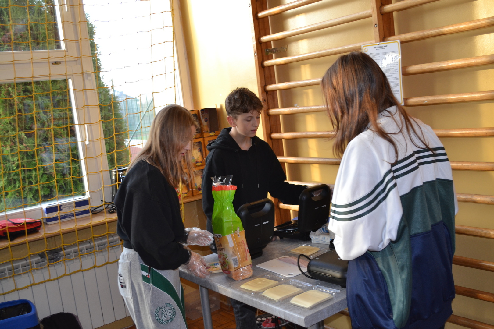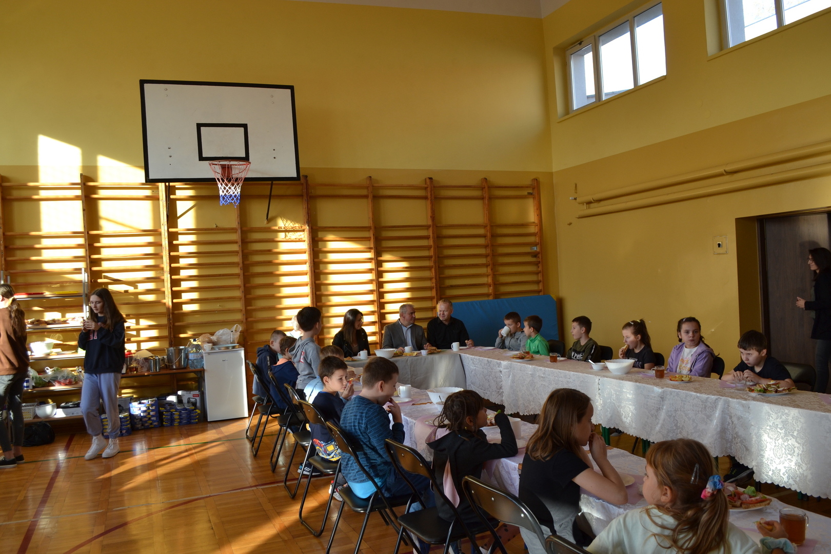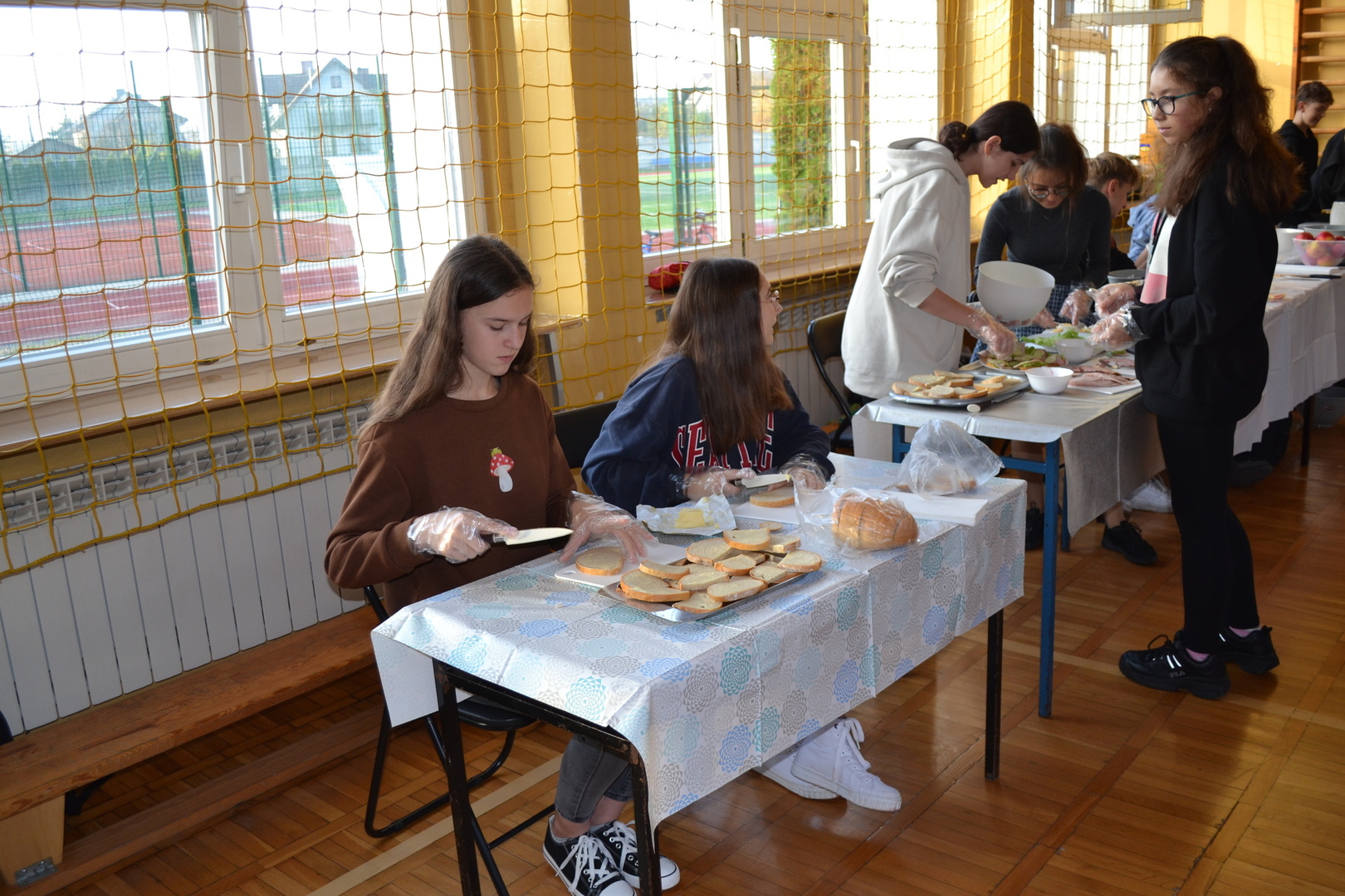 Ósmoklasiści z „dwójki” przy wsparciu Fundacji Nasza Dwójka i nauczycielek:Marzanny Błeszyńskiej, Katarzyny Cholewy, Małgorzaty Hamery i Beaty Gregorczyk zorganizowali dla swoich młodszych koleżanek i kolegów śniadanie integracyjne. Uczniowie samodzielnie przygotowali posiłek z wykorzystaniem sprzętu kuchennego zakupionego w ramach programu rządowego LABORATORIA PRZYSZŁOŚCI. Były tradycyjne i ciepłe kanapki, owoce, herbatka, sery, serki, kefirki podarowane przez Spółdzielnię Mleczarską, która zawsze wspiera nasze inicjatywy. Śniadanie rozpoczął dyrektor szkoły Zbigniew Hamera, przybliżając uczniom w jaki sposób w naszej szkole realizowany jest program LABORATORIA PRZYSZŁOŚCI. Oprócz pysznego i zdrowego posiłku, każdy maluch mógł zobaczyć pokaz zakupionego w ramach LABORATORIÓW PRZYSZŁOŚCI sprzętu. Dodatkową atrakcją była możliwość obsługi drukarki 3D, gogli VR, długopisów 3D, pobawić się robotem Photonem czy klockami konstrukcyjnymi. Atmosfera tego spotkania była fantastyczna – wszyscy wspaniale się bawili zarówno Ci, którzy przygotowywali śniadanie jak i zaproszeni na nie.