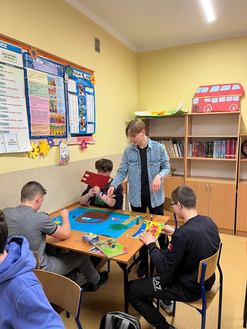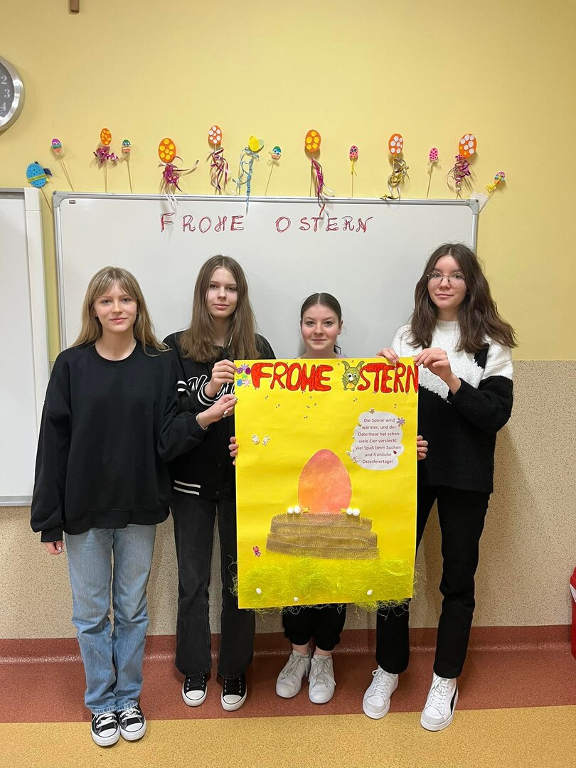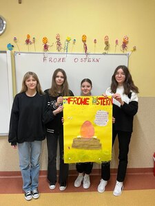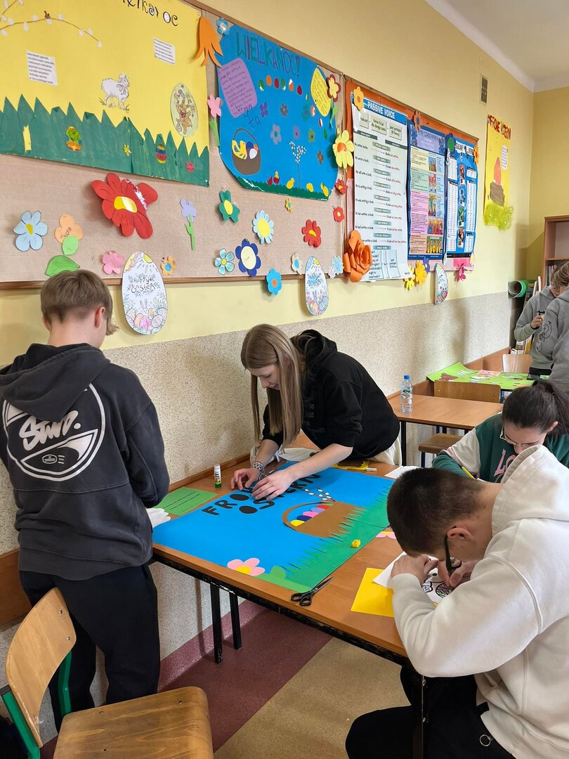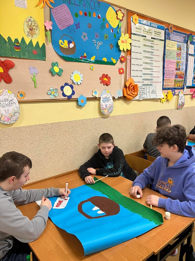 W ramach wielkanocnych lekcji projektowych z języka niemieckiego uczniowie klas siódmych i ósmych wykonywali w zespołach Osterposter (plakaty wielkanocne).