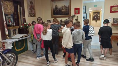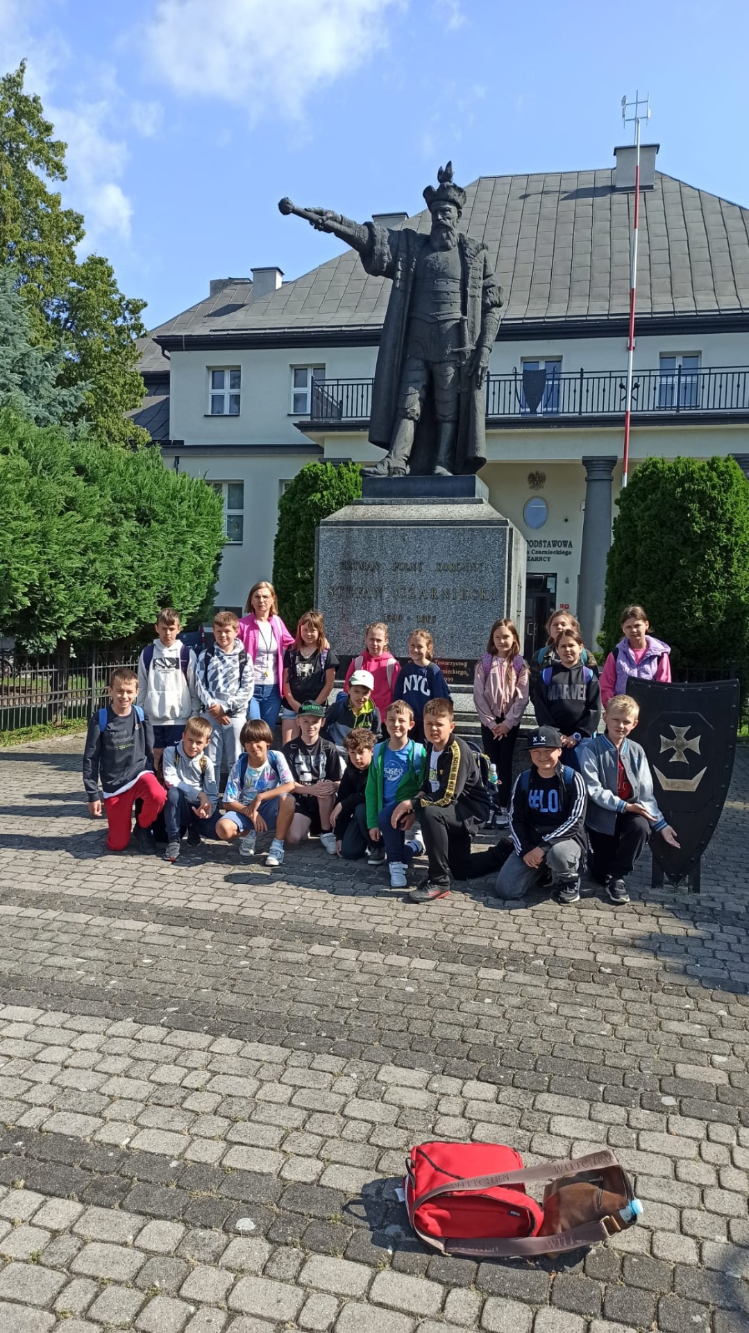 W ramach akcji „Pusta klasa’’ uczniowie klasy 3b pojechali na wycieczkę do pobliskiej Czarncy. Zwiedzili Centrum Edukacji i Kultury poświęcone hetmanowi Stefanowi Czarnieckiemu, które znajduje się w Szkole Podstawowej w Czarncy. Pani Katarzyna Andzel ciekawie opowiedziała o bohaterze, a dzieci z zainteresowaniem słuchały i oglądały pamiątki oraz inne eksponaty. Potem sprawdziły swoją wiedzę rozwiązując zagadki historyczne. Później panie z Rady Rodziców przygotowały kiełbaski z grilla, które dzieci ze smakiem zjadły, potem bawiły się na placu zabaw. Na koniec chłopcy rozegrali mecz w piłkę nożną z kolegami z Czarncy. Dobrze jest poznawać miejsca związane ze znanymi Polakami, szczególnie w najbliższej okolicy.