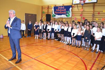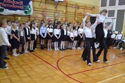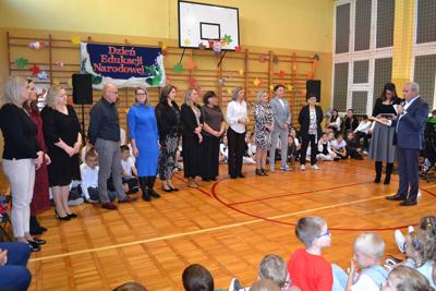 Podczas akademii Pan Dyrektor Zbigniew Hamera wręczył nagrody nauczycielom, oraz podziękował Panu Romanowi Gawronowi, wieloletniemu pracownikowi naszej placówki, który odszedł na zasłużoną emeryturę. Wszyscy uczniowie odśpiewali emerytowanemu już panu konserwatorowi „ 100 lat” i nagrodzili jego zaangażowanie gromkimi brawami, podobnie jak występy uczniów. Akademia pełna wzruszeń, humoru i wdzięczności, na długo pozostanie w pamięci wszystkich nauczycieli.