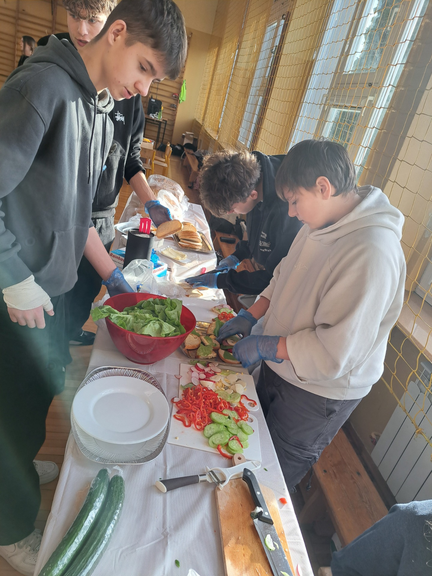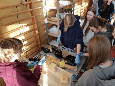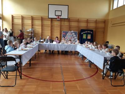Po raz czwarty uczniowie klasy 8 z włoszczowskiej dwójki przygotowali śniadanie integracyjne dla pierwszoklasistów. Projekt realizowany jest przy wsparciu Fundacji Nasza Dwójka, w ramach zadania publicznego Akademia Wolnego Czasu, dotowanego przez Burmistrza Gminy Włoszczowa. Ósmoklasiści samodzielnie przygotowali dla młodszych koleżanek i kolegów posiłek, wykorzystując sprzęt kuchenny zakupiony przez Fundację Nasza Dwójka oraz w ramach rządowego programu LABORATORIA PRZYSZŁOŚCI . Były tradycyjne i ciepłe kanapki, gofry, owoce, herbatka, sery, serki. Śniadanie zagaił dyrektor szkoły Zbigniew Hamera, który zaakcentował jak ważnym dla zdrowia posiłkiem jest śniadanie, zdrowe odżywianie oraz wspólne spożywanie posiłków, bo to przecież nie tylko energia dla naszego organizmu ale również czas na pozytywne relacje, tworzenie się więzi, radość ze wspólnego działania i dzielnie się.