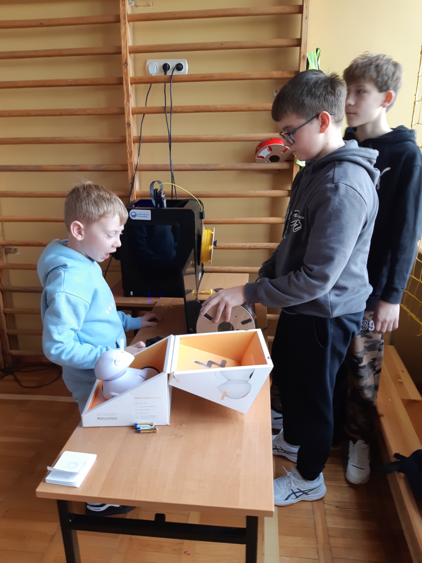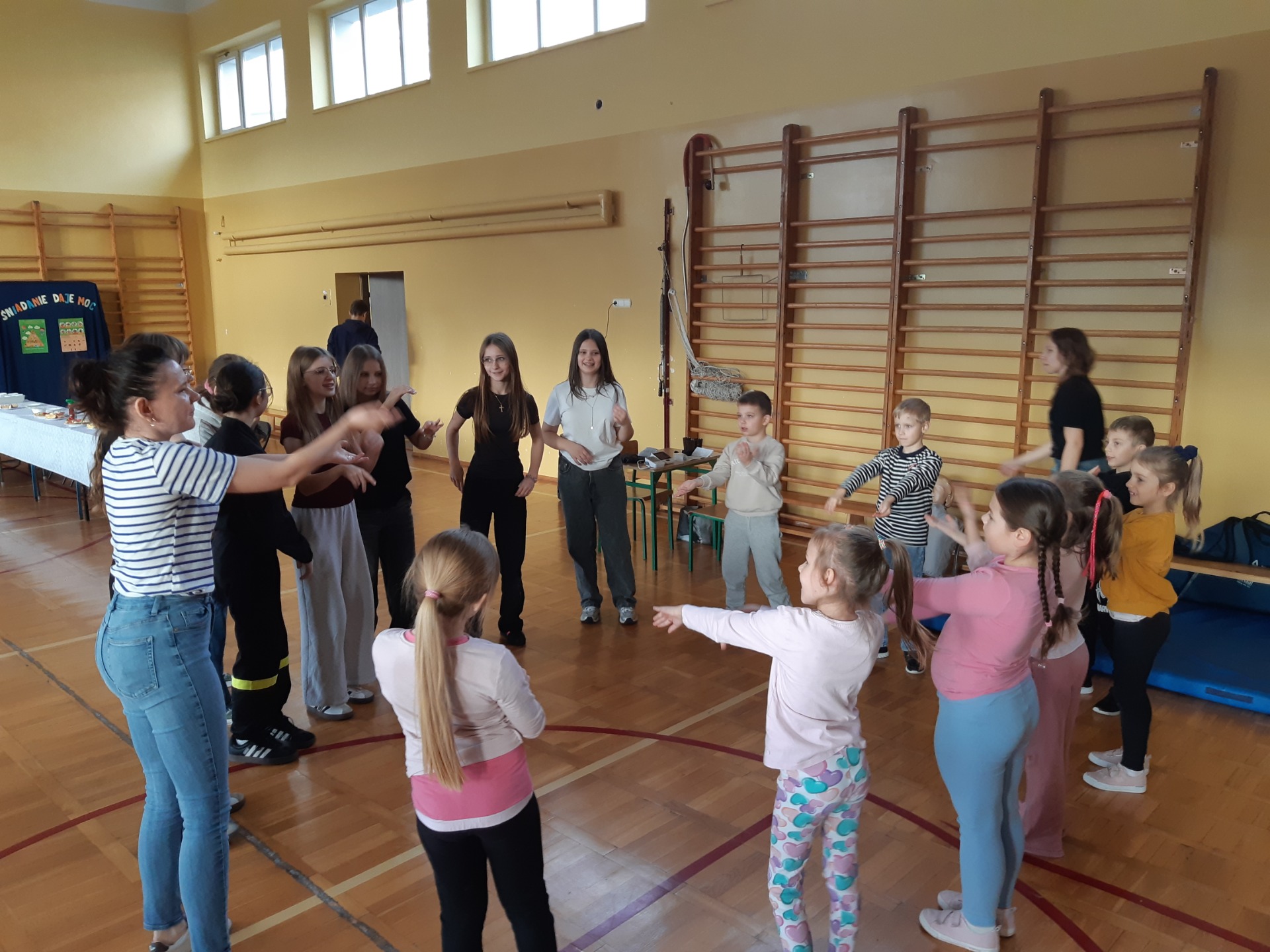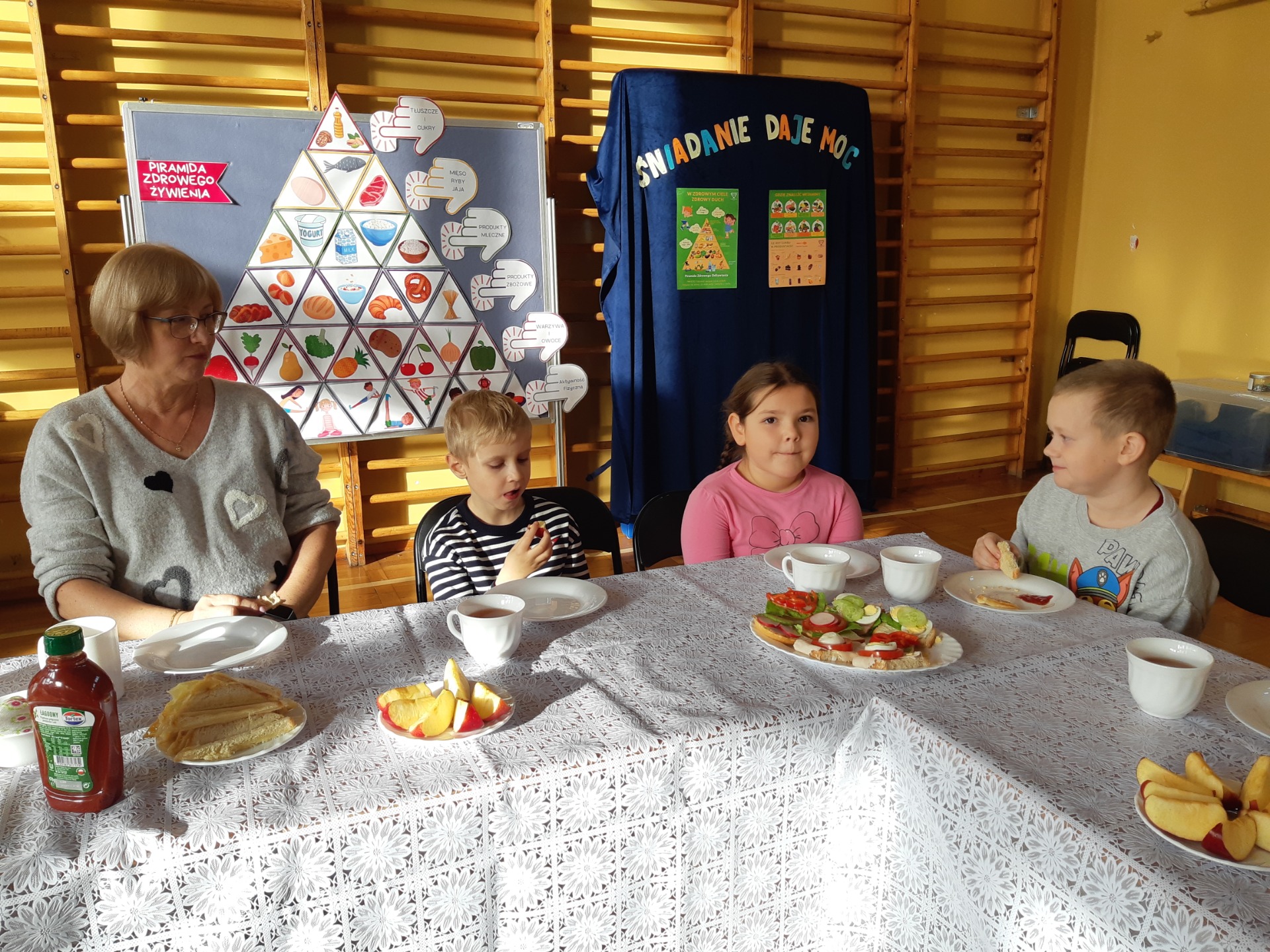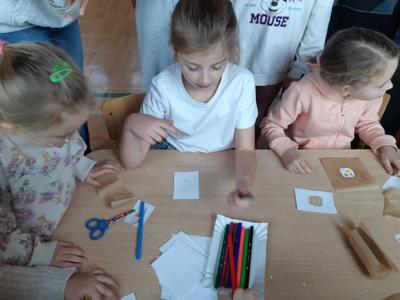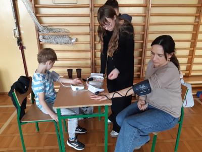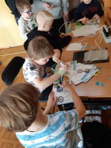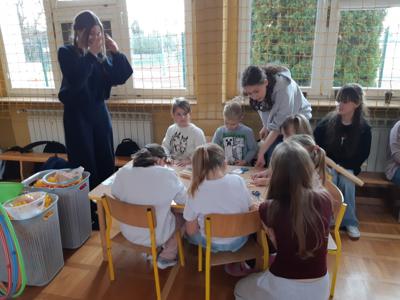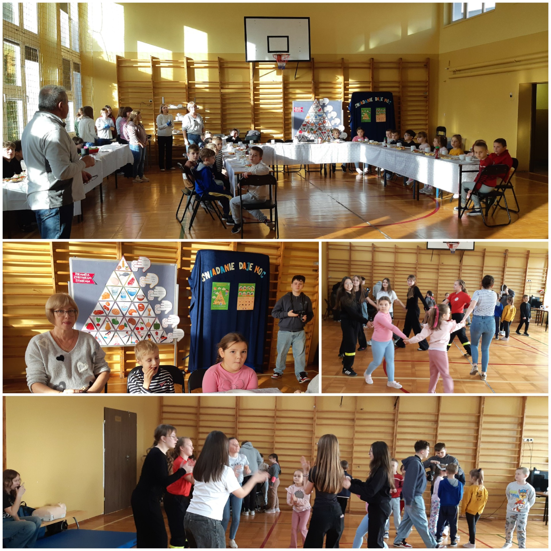 Po zjedzeniu zdrowego i pysznego śniadania, każdy maluch mógł uczestniczyć w zabawach ruchowych przy muzyce oraz zobaczyć pokaz udzielania pierwszej pomocy, zmierzyć saturację i ciśnienie. Dużą atrakcją dla pierwszaków była możliwość zabawy robotem i goglami 3D, wykonanie przestrzennych rysunków długopisami 3D oraz zabawy plastyczno- techniczne. Nad całością projektu czuwały panie: