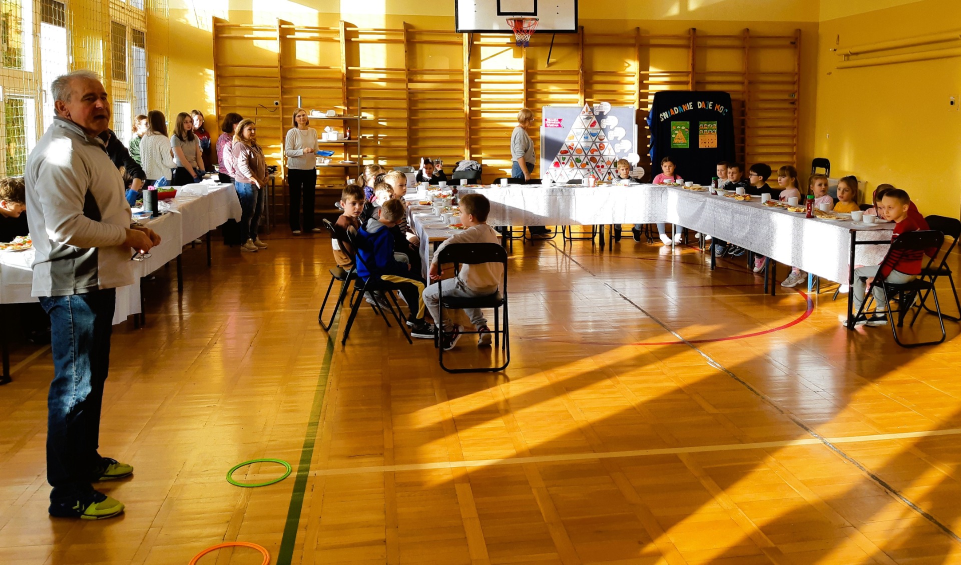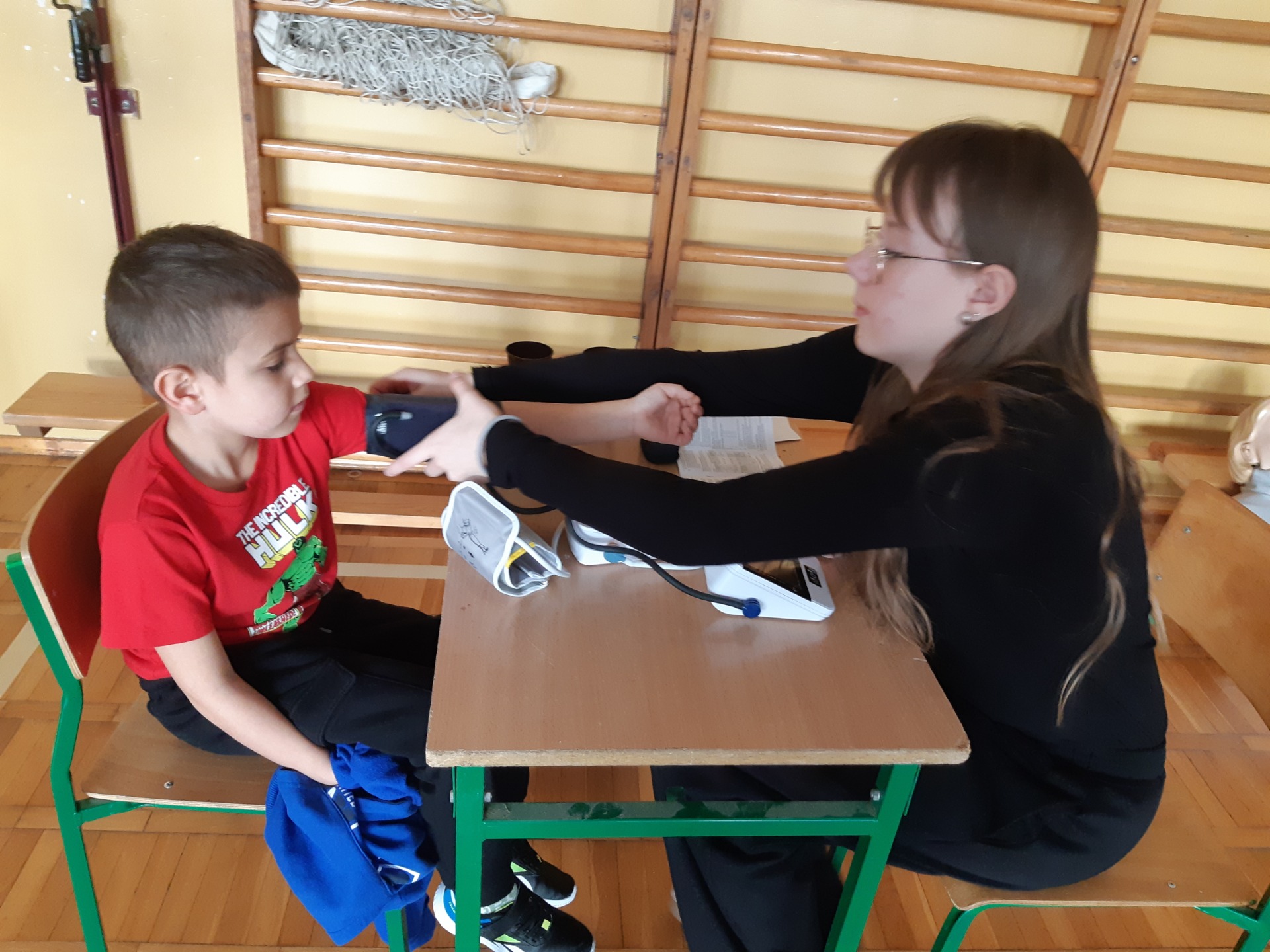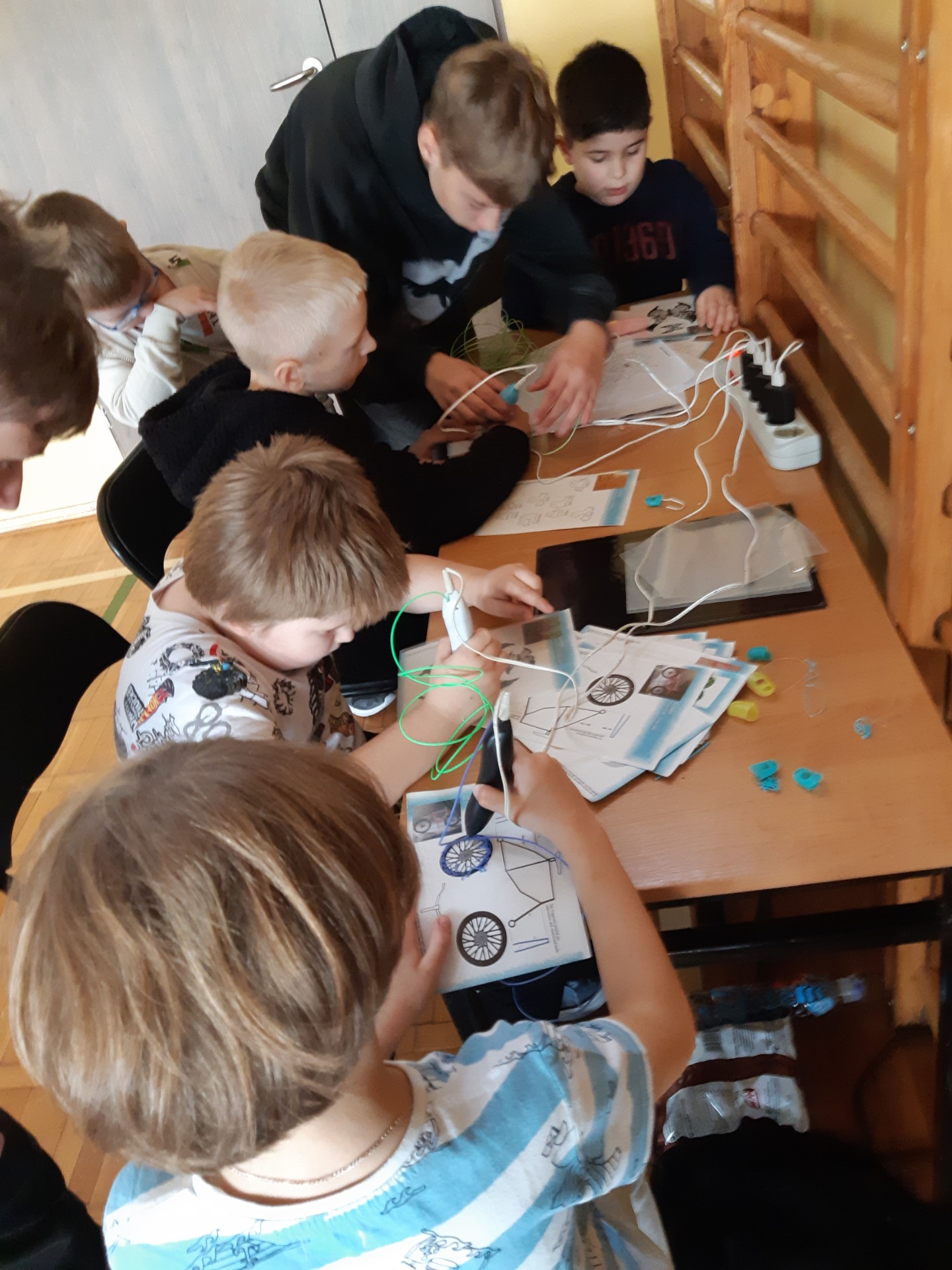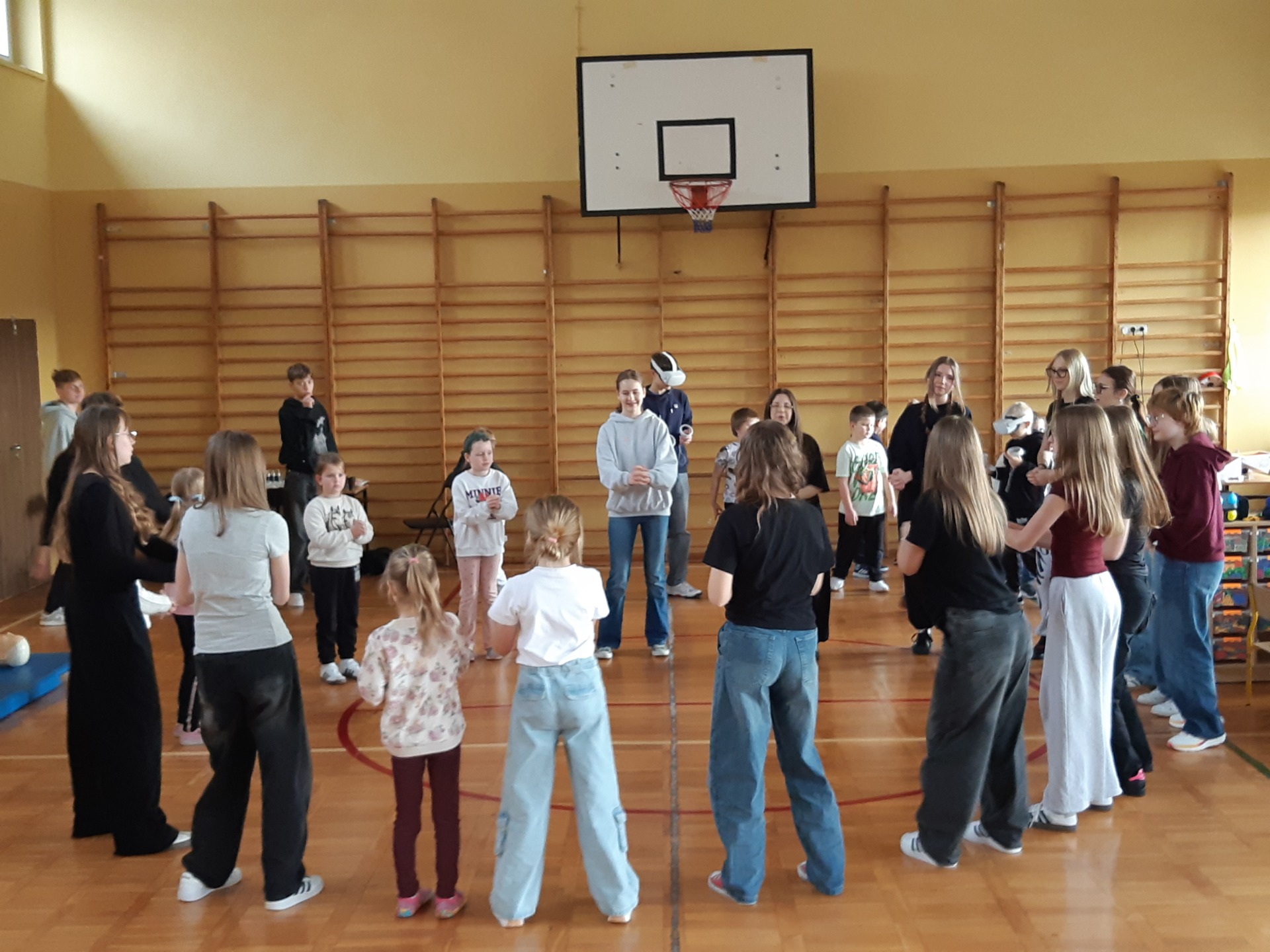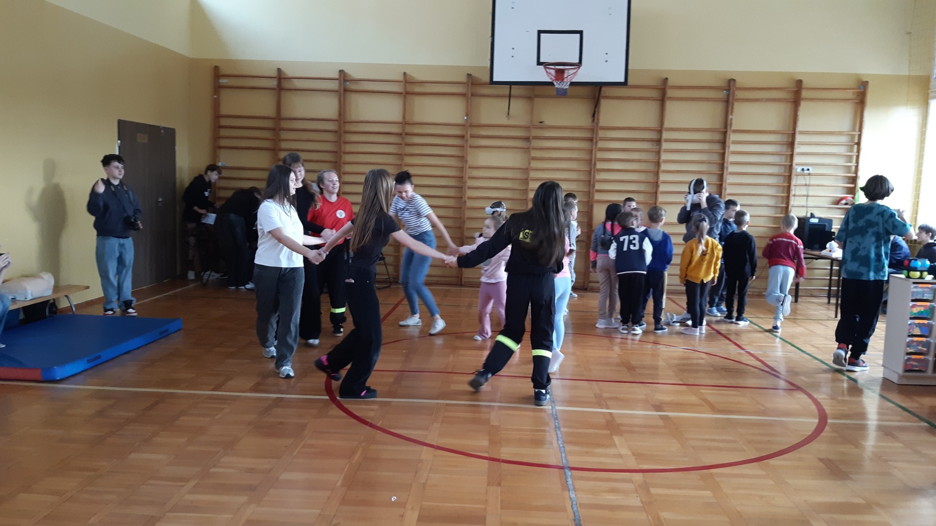 Po zjedzeniu zdrowego i pysznego śniadania, każdy maluch mógł uczestniczyć w zabawach ruchowych przy muzyce oraz zobaczyć pokaz udzielania pierwszej pomocy, zmierzyć saturację i ciśnienie. Dużą atrakcją dla pierwszaków była możliwość zabawy robotem i goglami 3D, wykonanie przestrzennych rysunków długopisami 3D oraz zabawy plastyczno- techniczne. Nad całością projektu czuwały panie: