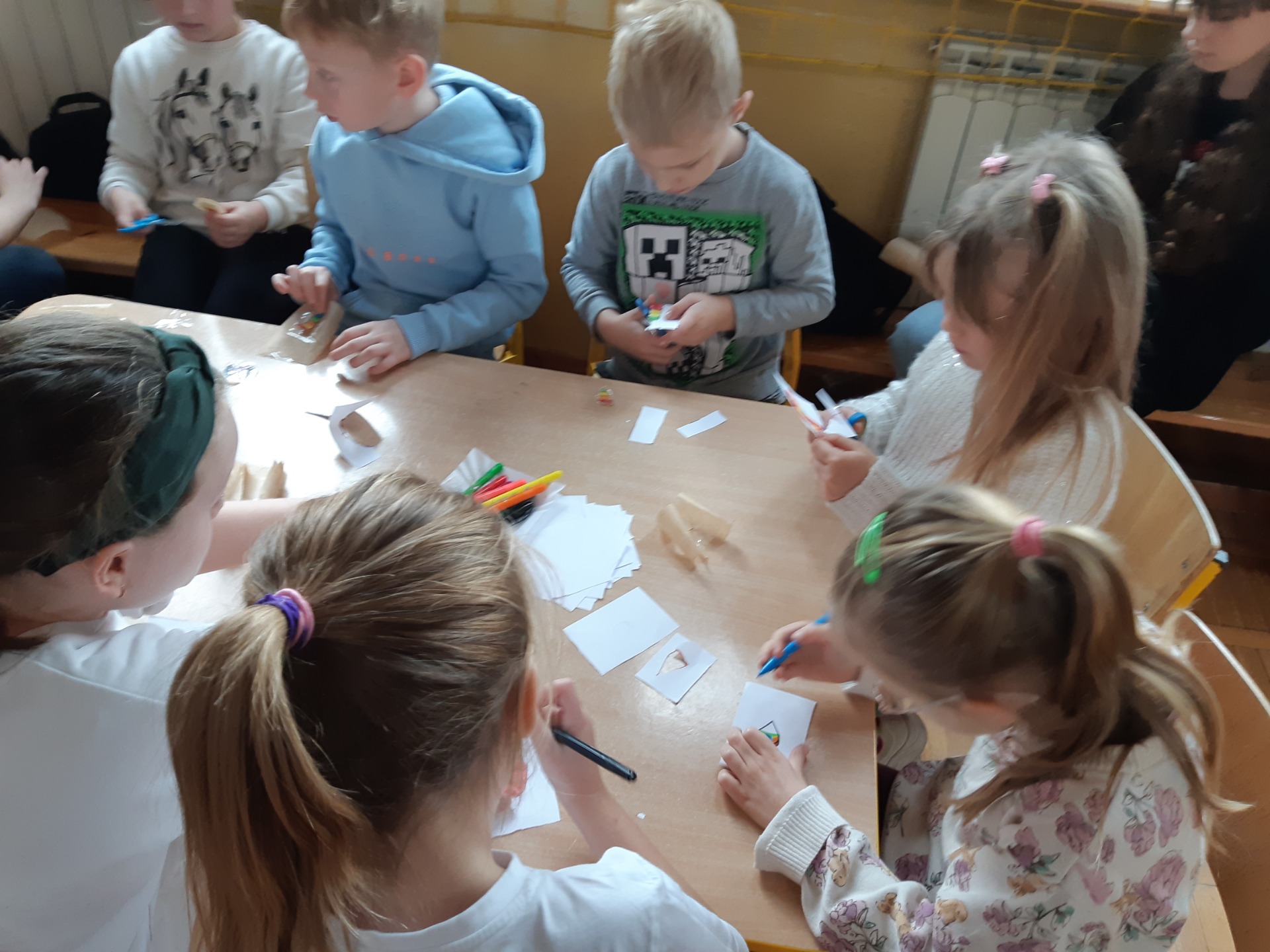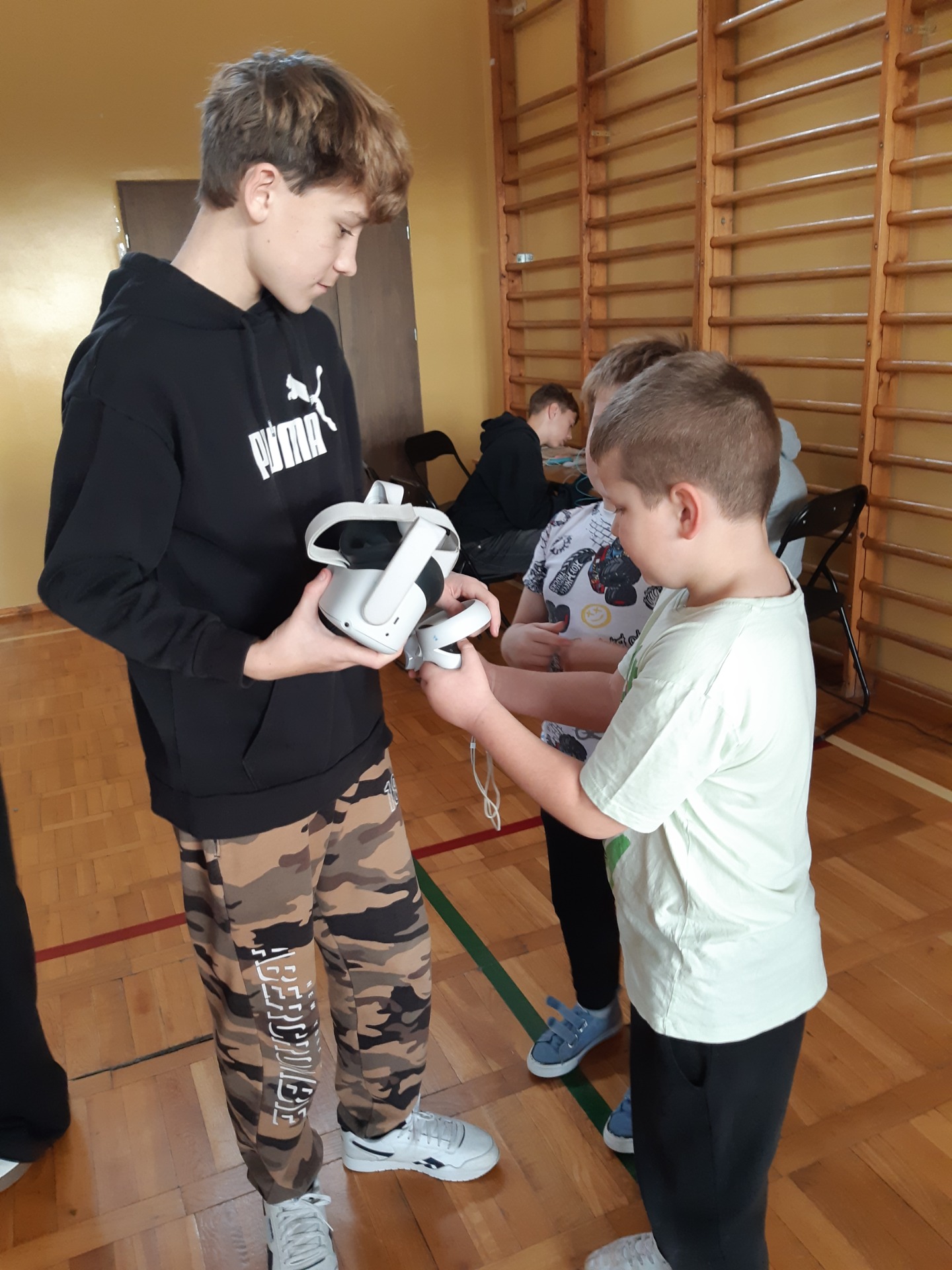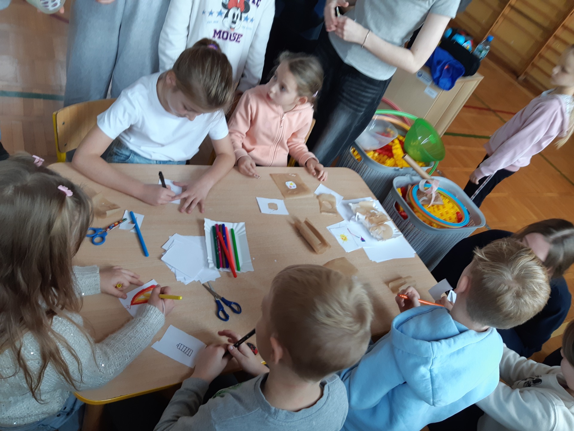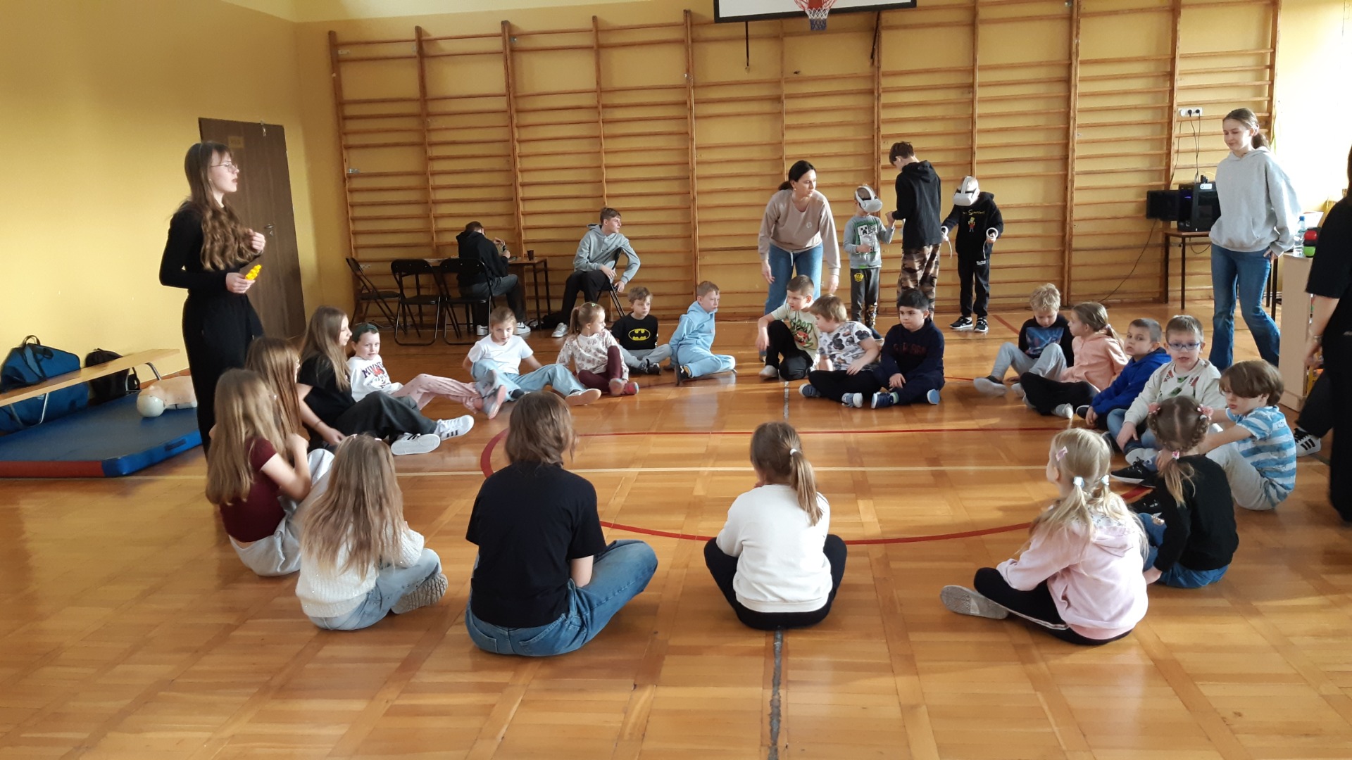Po zjedzeniu zdrowego i pysznego śniadania, każdy maluch mógł uczestniczyć w zabawach ruchowych przy muzyce oraz zobaczyć pokaz udzielania pierwszej pomocy, zmierzyć saturację i ciśnienie. Dużą atrakcją dla pierwszaków była możliwość zabawy robotem i goglami 3D, wykonanie przestrzennych rysunków długopisami 3D oraz zabawy plastyczno- techniczne. Nad całością projektu czuwały panie:
