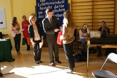 I miejsce dla uczennicy kl.III b gimnazjum Weroniki Śpiechowicz oraz wyróżnienie dla Aleksandry Synowiec w III Powiatowym Konkursie Recytatorskim w języku niemieckim .