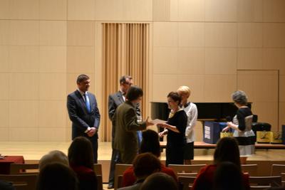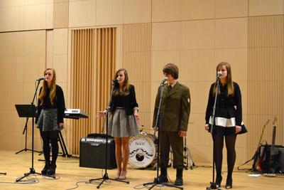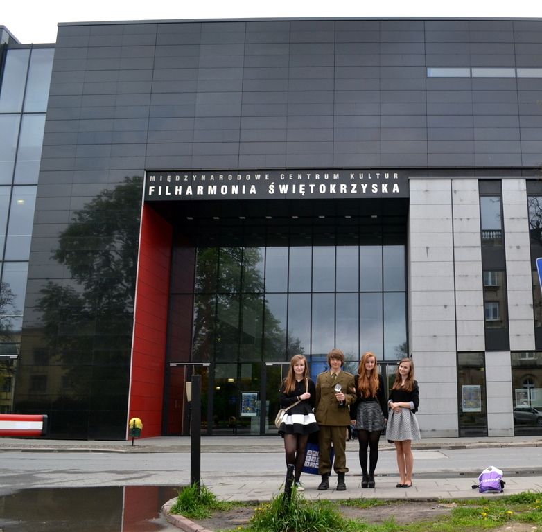 26 kwietnia w Filharmonii Kieleckiej odbył się finał I Konkursu Piosenki Patriotycznej, poprzedziły go eliminacje powiatowe. Udział w elimnacjach brali : Paweł Rydz i ,, Kwartet z Dwójki”. Ten etap konkursu okazał się dla naszych uczestników szczęśliwy i w komplecie pojechaliśmy do Kielc. W finale brało udział ponad 60 solistów i zespołów. Wśród nich pierwsze miejsce zajął Paweł Rydz, bardzo dobre wrażenie sprawił również ,, Kwartet z Dwójki”. Nagrodę w postaci pięknej statuetki wręczała Pani Minister Edukacji Joanna Kluzik-Rostkowska. Gratulujemy Pawłowi kolejnego sukcesu!!!