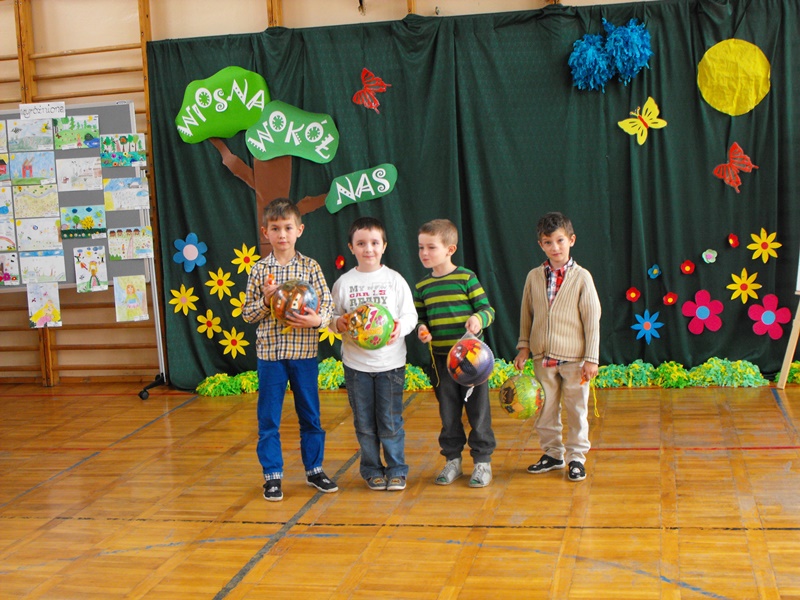 Wyniki konkursu zostały ogłoszone przez p. dyr. Ewę Jamróz- Molenda dn. 14. 05. 2014r. na apelu szkolnym, podczas którego uczniowie klas młodszych zaprezentowali swoje możliwości wokalne i recytatorskie. Pani dyrektor podkreśliła wysoki poziom prac konkursowych. Zwróciła uwagę na różnorodność zastosowanych technik, pomysłowość oraz estetykę wykonania. Wyróżnieni przez jury uczniowie otrzymali nagrody ufundowane przez Urząd Miasta i Gminy. Prace laureatów umieszczono na wystawie w holu szkoły.